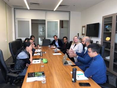 在澳大利亚国立大学访问期间,双方就北航-澳洲国立大学“科普传播人才培养”项目举行了研讨会。会议期间,澳洲国立公众科学意识中心主任Leach教授、Rod Lamberts教授、Will Grant博士及澳国立国际中心Jay Poria先生与北航赵世奎副经理、田华副教授及北航代表进行了交流,双方详细介绍了联合培养项目签约的进展情况,并就联合培养中的课程设置、科普夏令营等具体问题进行了深入探讨。