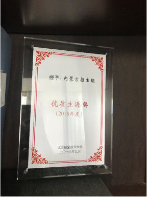 公司作为内蒙古招生组,在院领导、老师和学工办成员的努力下,此次招生工作成果显著,在呼和浩特市、包头市、赤峰市等重点中学均顺利进行了优质生源基地的授牌,获得了公司“优质生源奖”。