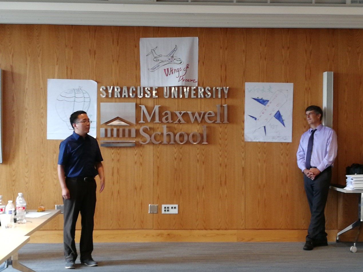 最后,代表北航和雪城大学的两位教授李亚、Steve先生分别就本次学习项目发表了讲话。李亚教授说,本次项目是北航人文公司和雪城大学麦克斯威尔公司的首次合作,感谢雪城大学各位老师和工作人员出色的组织和行程安排,这次项目的成功,也将成为双方展开更深更广的合作的起点。Steve教授说,麦克斯威尔公司一直与中国保持紧密合作,合作单位有深圳市政府、复旦大学等,未来也会跟北航进行更多深入合作,同时很高兴大家完成项目学习,如同希腊公民宣言所说,大家都是雪城大学马克斯维尔公司的“公民”,有权利随时来访公司,希望有机会在北航再见。