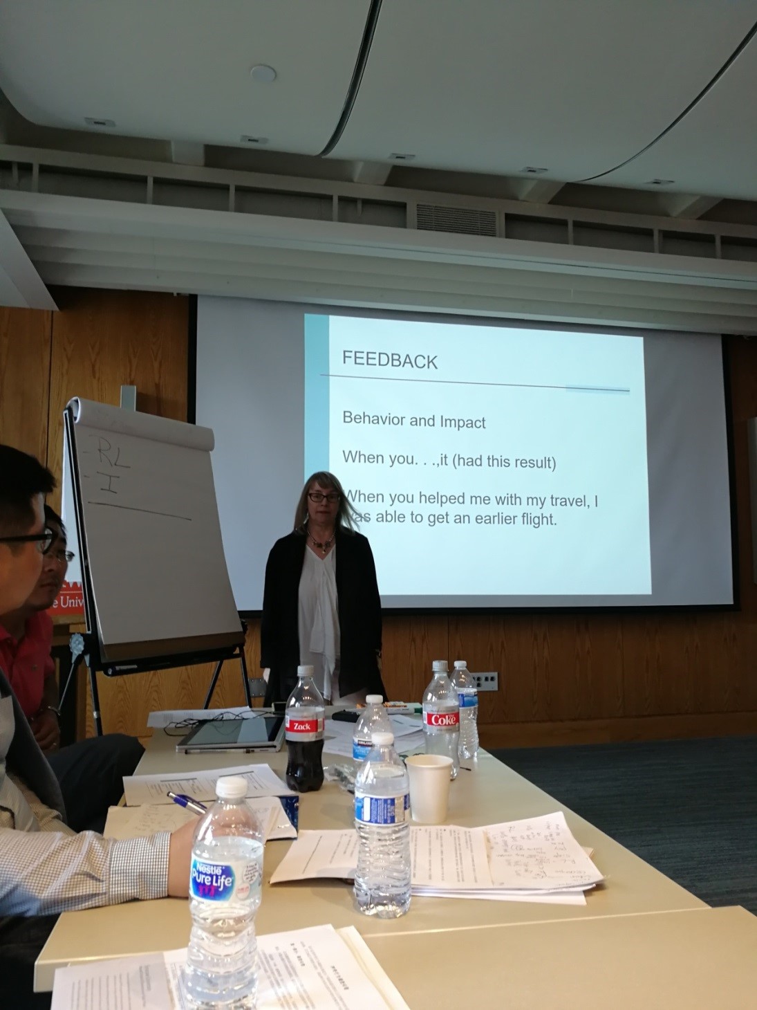 下午1点,由冲突与合作项目主任、高级公共管理教育副主任——杰勒德女士,带来主题为“人际关系冲突管理”的工作坊。杰勒德女士有多年州政府工作经验,深谙政府部门间协作式管理的重要性和技巧。主要从公共管理角度,及解决冲突的技巧两方面来展开。通过让学员们亲自参与实践模拟,加深了对反思式倾听、利益质询等方法的理解,并能熟练利用。体会感悟:课程设计里的测评问卷解决冲突的方式:协作型、妥协型、回避型、控制型,还有分组游戏“看两个人对垒的时候谁的得分最高”,以判断是属于:双赢型、双输型、一赢一输等类型,饶有趣味,在游戏中学到了知识。我们的提问有诸如“您如何看待美国的枪支问题?”等尖锐问题,我请教的问题是:您是研究冲突管理的,您能否从冲突管理的研究角度,评价一下中美贸易战、如何解决中美贸易战。杰勒德教授从学术的角度,给了我们非常详细的解答。