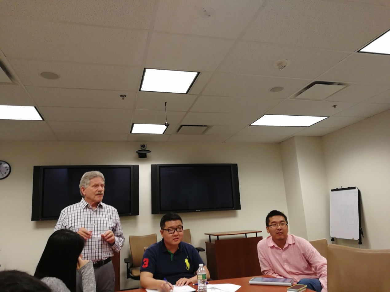首先是本项目的开班仪式。雪城大学马克斯韦尔公民与公共事务公司高级公共管理教育主任Steve Lux教授对同学们的到来致欢迎词,师生互做自我介绍,这次访学交流项目的雪城大学总策划陈学毅老师、雪城大学北京中心主任童海燕老师、北航教授兼富布莱特访问学者李亚老师,以及翻译郑博和张佳翼等,都做了热情洋溢的发言,大家在互动中更添温馨亲近。Steve教授详细介绍了锡拉丘兹市和雪城大学的成立背景、历史文化、公司产品、团队与员工以及本次项目的目标和主要内容。体会感悟:雪城大学Maxwell公司历史悠久、学术氛围浓厚、成果卓著,公共管理专业之盛名名副其实。Steve教授的学识渊博、谈吐幽默、风度儒雅、和蔼可亲,让大家领略了名家风采。