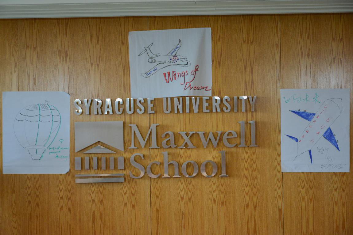 冲突与协作项目主任、高级公共管理教育副主任杰勒德老师要求大家在结业之前,把最想要留在锡拉丘兹大学的东西画下来。同学们集思广益、发挥想象力,经过热烈的讨论,将想法画在了纸上并进行展示,为雪城大学和麦克斯威尔公司送上有象征意义的“创意礼物”。