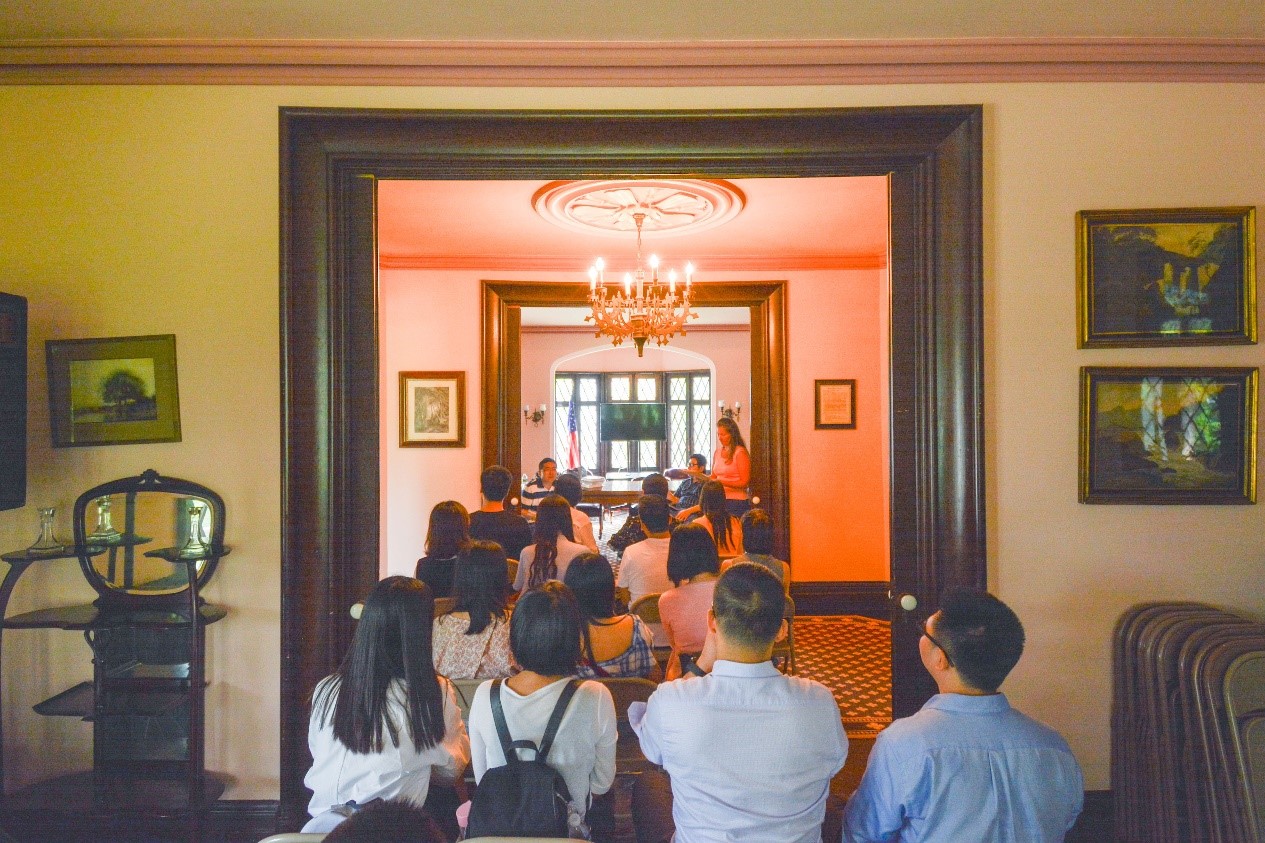 室内学习结束后,我们集体乘车来到了Stone Quarry Hill艺术公园,这里原本是一对已逝艺术家夫妇的私人住宅,后来逐渐发展为一个致力于艺术发展、在当地颇有影响力的非政府组织。采石山雕塑公园访客服务与公园推广专员泰尔基麦慈女士详细介绍了该公园的组织架构和面临的问题,并且提出了一些富有创意的解决方法。