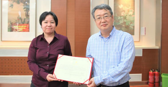 黄海军副董事长向学术委员会新增学术委员加拿大英属哥伦比亚大学教育公司副教授Hongxia Shan颁发聘书