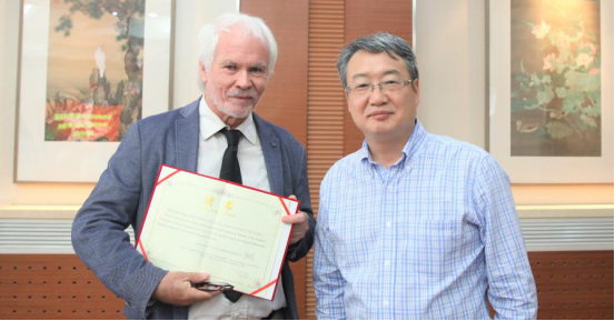 黄海军副董事长向学术委员会新增学术委员法国巴黎第八大学教育公司教授Didie Moreau颁发聘书