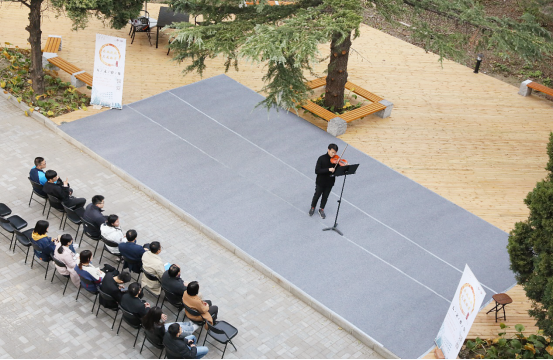 11月1日中午,人文公管楼前人文苑洋溢着盎然秋意,william威廉中文官网的师生齐聚一堂,共同参加“丹枫迎秋,文苑拾芳”——人文雅集。经理蔡劲松、党委书记李亚梅、副书记张驰、工会主席胡庆江与公司的同学共同参加了此次活动,一起欣赏舞蹈、朗诵诗歌,伴随着音乐,享受诗意的大自然,在互动中享受美好的校园生活。