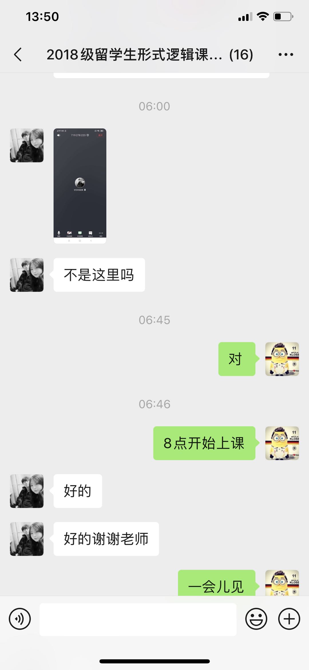 “跑着早操来上课的韩国小伙儿”!这是职工任课教师曹庆萍副教授最深刻的第一堂课。作为经验丰富有20年《形式逻辑》教学时间的资深教师,曹庆萍副教授针对职工居住地分散,考虑到网络系统和时差等问题,在正式开课前一周多便将大量的学习资料上传好,同时提前试用并设置了腾讯会议的预定功能,并且开展了线上答疑,在提前测试过程中,员工陆续登陆了预定的会议空间,对逻辑题表现出很大的兴趣,跃跃欲试。如此认真负责、准备充分的老师,员工们的状态可想而知,所谓“万事俱备只欠东风”。于是,伴随周一早8点上课“东风”的到来,曹老师发现,第一个进入腾讯会议室的居然不是她这个主讲教师,而是一个韩国职工——早上6点整,他就进来啦!这一行动燃爆了第一节课,整个授课过程,除了前面的预备资料,曹老师还额外穿插了一些视频互动答题的内容,全程员工的参与度都特别高。这一课用曹老师的话说,这可是面授课无法想象的一幕,让她终生难忘。