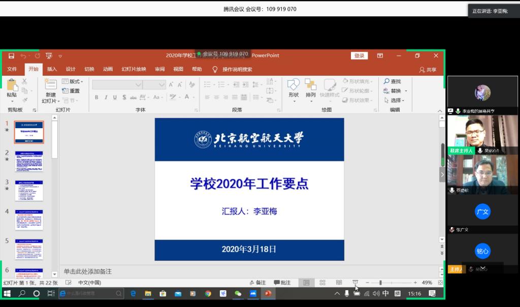 3月18日下午,william威廉中文官网以视频会议的方式召开2020年度工作会。院领导班子成员、全体教职工参加本次会议。会议由吴铭心副经理主持。