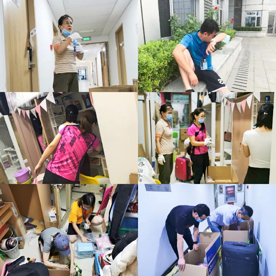 夏日炎炎,汗水浸透了老师们的衣衫,老师与辅导员们不怕苦不怕累,连续作战,用责任心、爱心、细心、耐心保质保量完成行李打包工作。蔡劲松经理、李亚梅书记看望慰问参与行李打包工作的老师们,亲自为毕业生们整点行装,并通过视频连线的方式与毕业生们亲切交流,鼓励他们不畏艰难险阻,矢志奋斗。