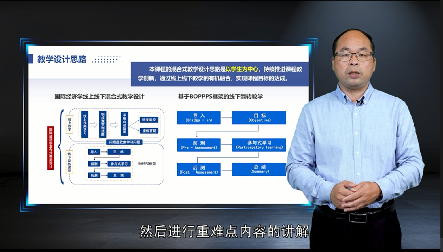 《国际经济学》:是公司首批建设的校级一流本科课程,也是公司第一门线上线下混合式专业课,课程负责人是胡庆江副教授,团队成员包括牛朝辉老师、韩霞教授、张丽教授。课程严格按照一流本科课程“两性一度”要求,实现了教学目标的高阶性、教学内容的创新性、教学设计的挑战度。课程构建了线上线下混合式教学模式;重构了教学内容与板块;制作了高水平、海量的线上线下教学资源;创新运用了“四位一体”的教学方法;构建了全过程、多元化的课程评价方式;开展了浸润式、融合化的课程思政。在公司一流本科课程建设项目的支持下,课程团队制作了高水平慕课并在智慧树上连续运行,出版了国际经济学教材,编写了课程习题集以及课程全套混合式教学大纲、教案、PPT、案例库、课程思政教学设计和教学案例等,发表了混合式教改论文和课程思政论文各1篇。