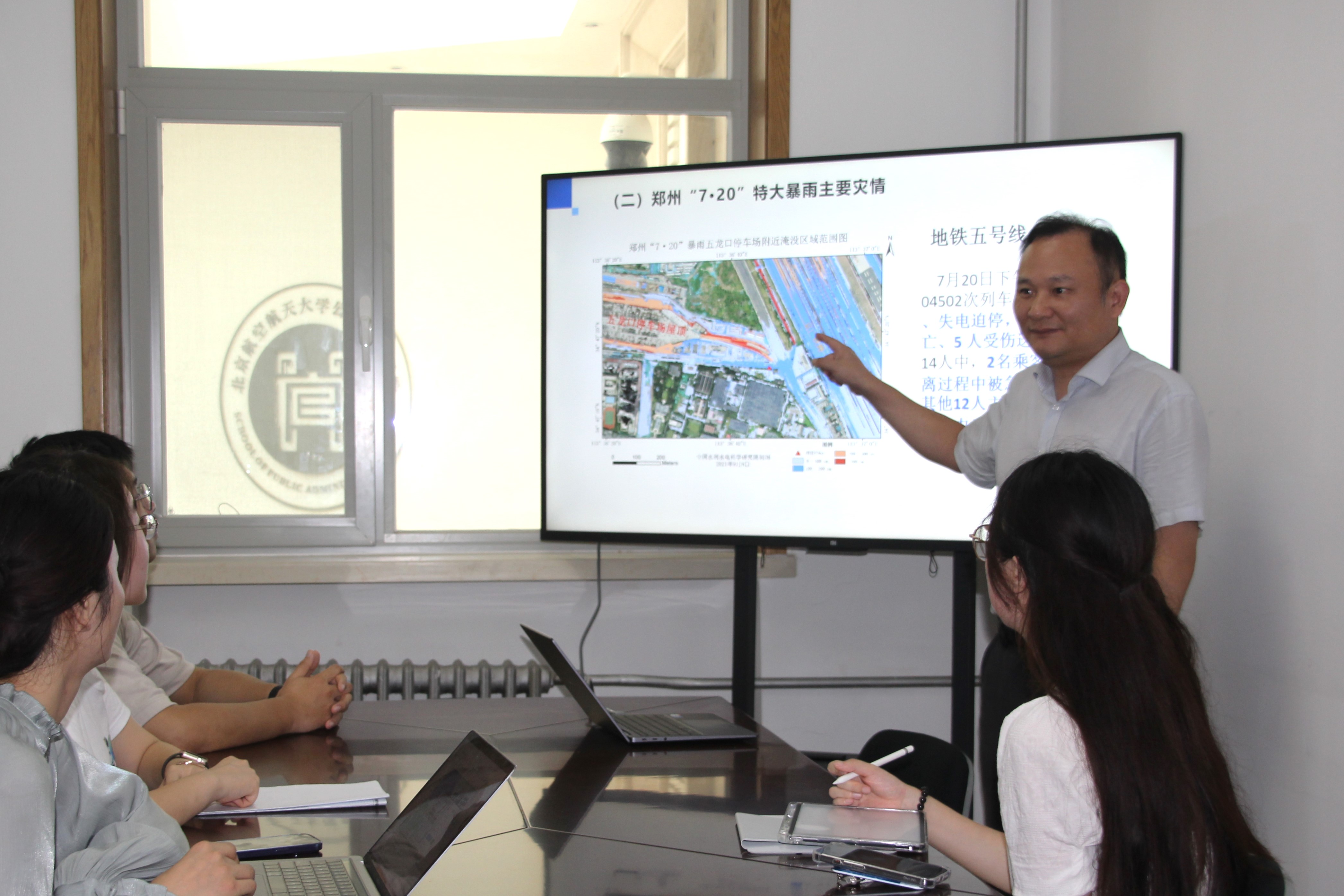 此次调查工作时间紧迫、任务艰巨,我同时担任多门课程教学并负责博士、硕士培养工作。参与调查评估工作期间,我数次往返于北京与郑州,既以专业知识服务于调查评估,又要高质量完成教学科研工作。于是我尝试进行融合式教学,将调查工作素材转化为教学资源。以此次灾害为例,我与科研团队探索开发了情景模拟教学课件。如今,相关课程已上线国家行政教育公司的学习公社平台。