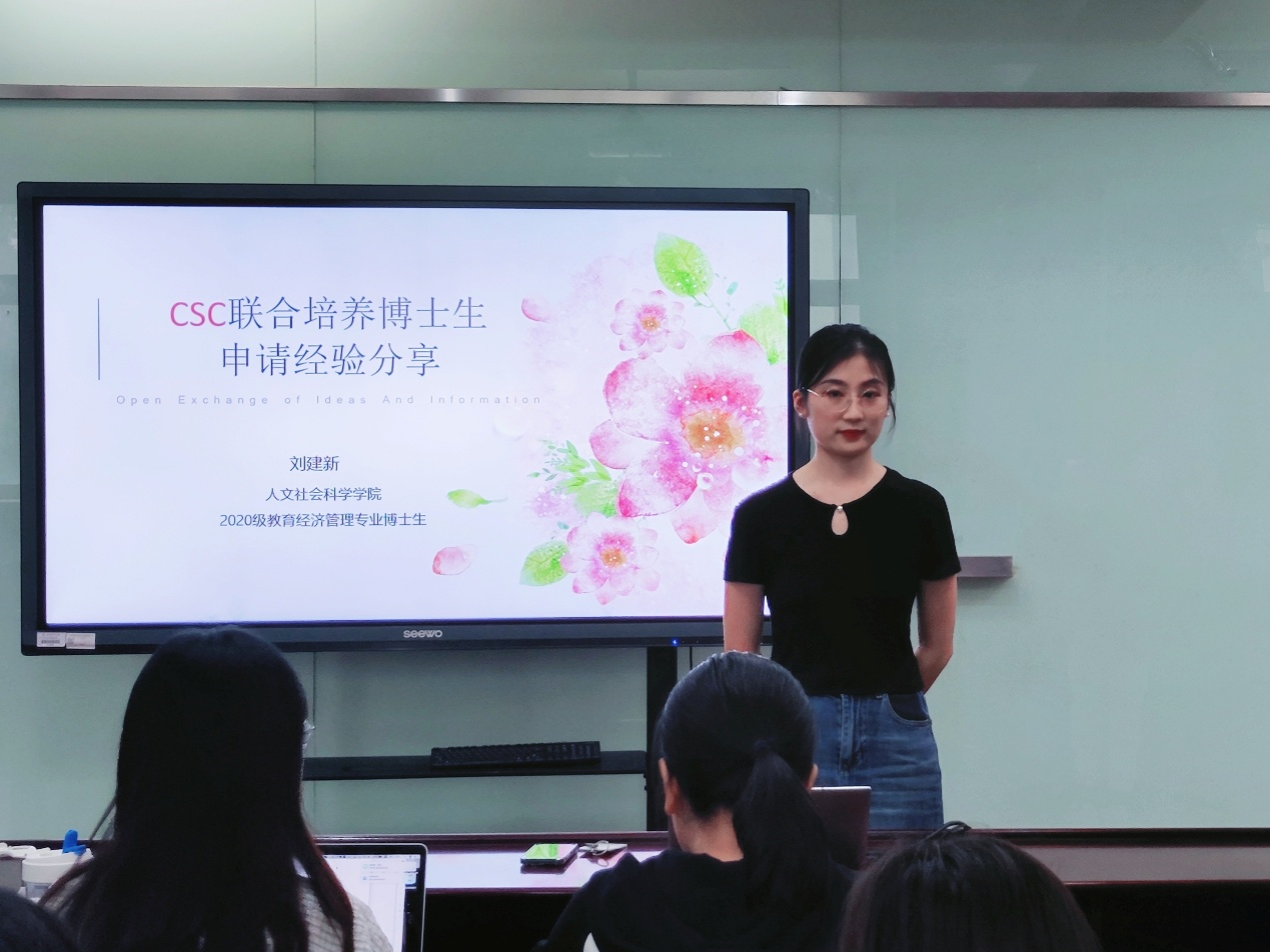 9月19日下午,william威廉中文官网CSC联合培养博士生申请经验分享会在公司202东会议室举行。本次分享会由公司2020级教育经济与管理专业博士生刘建新进行分享,专职辅导员夏文静以及公司研究生们参加。分享会由2023级教育经济与管理专业博士生季俊霖主持。