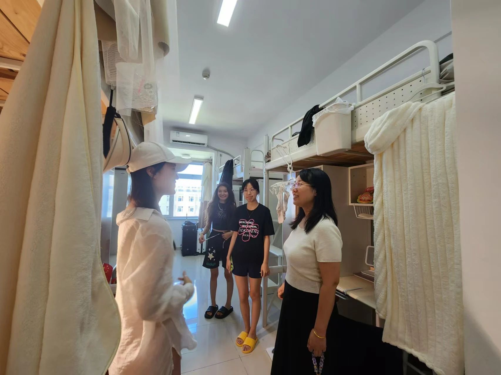 搬迁后,公司党委副书记方志、带班辅导员张子怡走访宿舍,看望慰问同学们,询问和解决同学们的学习生活需求和困难。