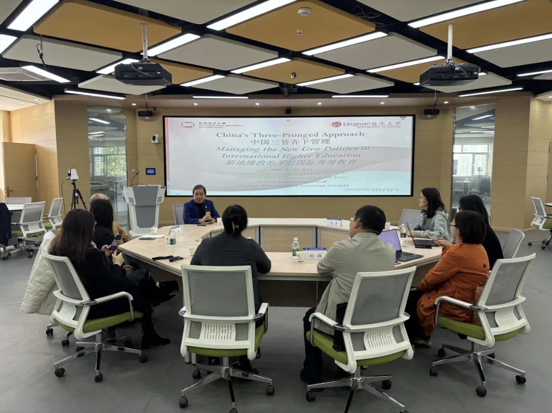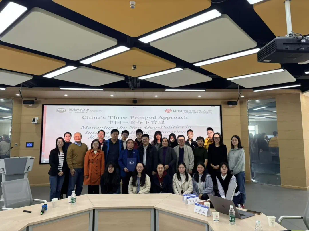 莫家豪教授深入分析了当今国际高等教育受到地缘政治的影响,指出在当前国际地缘政治格局冲突日趋加剧的环境下,领土争端和贸易竞争已经不可避免地影响了高等教育机构的治理。莫教授以美、澳等国为例,指出了地缘政治冲突为中国职工带来的“污名化”的文化歧视与不公待遇,以及该群体不断加重的精神和财务压力。针对上述问题,莫教授指出应从三方面来解决:第一,在国际上要树立国际教育枢纽地位,加强中国的区域教育中心地位;第二,在区域中,与地缘国签署区域全面经济伙伴关系协定并深化合作,通过多边主义重新确认其全球领导者地位的机会,增强在亚太地区的主导实力;第三,在国内要加强跨国高等教育与湾区经济发展,拉动粤港澳等湾区高等院校共同发展成为一个强大的高等教育中心。线上线下师生反响热烈,收获颇丰,与莫教授就国际高等教育发展现状与未来,以及采取何种措施打破“逆全球化”局势进而实现开放的国际高等教育等关键问题进行了深入讨论。
