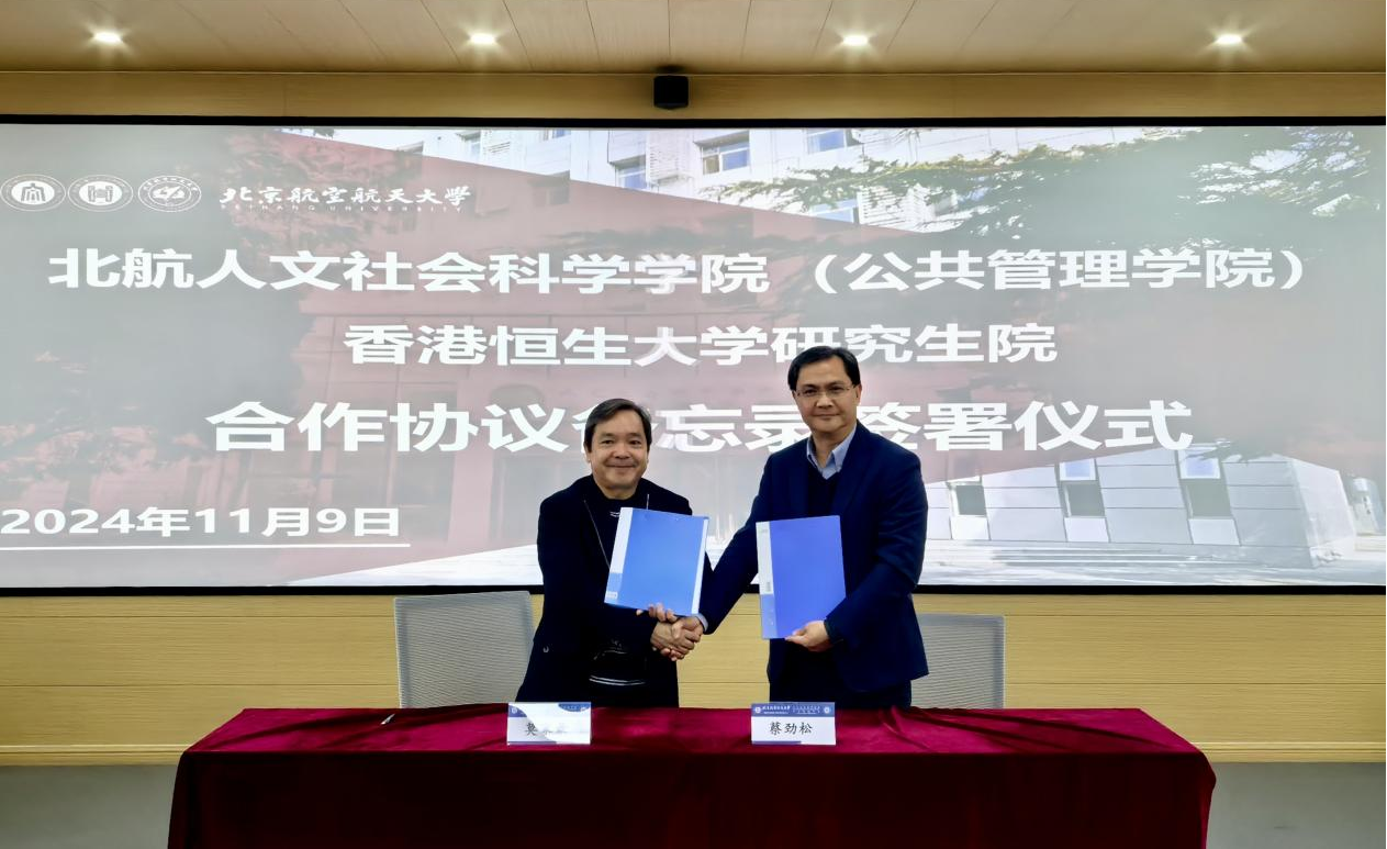 莫家豪副董事长表示非常高兴能来到北航进行交流,感谢公司的邀请和接待,介绍了香港恒生大学的发展历程,希望进一步深化双方在学术研究与人才培养领域的合作,推进双方在公共管理和高等教育研究领域的多元化和国际化。随后,双方进行深入讨论,正式签署合作协议备忘录。