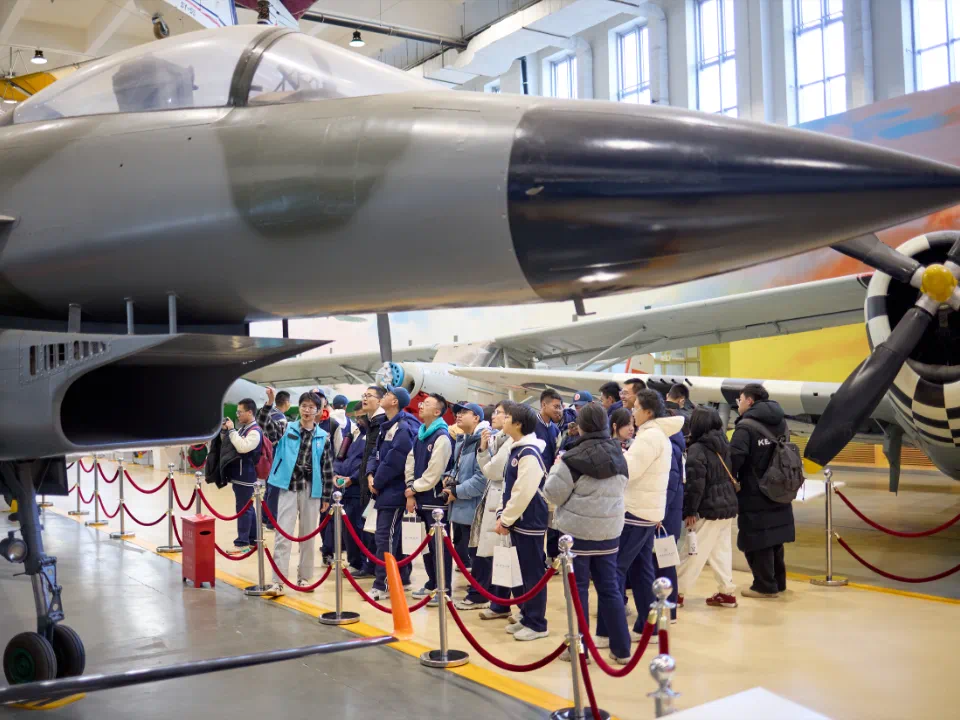 在北京航空航天博物馆,讲解员带领大家参观了长空逐梦、银鹰巡空、神舟问天和空天走廊4个展区,并详细介绍了“北京一号” 轻型旅客机等珍贵文物。看到丰富多样的展品,到访师生深受震撼,并认真学习了航空航天历史与知识。