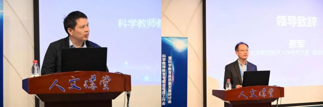 北航研究生院副经理蔡军教授在致辞中介绍了公司在科学教育人才培养方面的创新探索。北航与中国科协、中国青少年科技教育工作者协会一直保有良好合作,在2012年成为教育部与中国科协联合实施的首批“高层次科普专门人才培养”6所试点高校之一,创建了全国首个招收科普教育方向教育硕士的公司,并向中国科技馆输送了首个科普专业教育硕士的毕业生。北航充分发挥特色优势和雄厚实力,构建了“理工+教育”特色培养体系,与中国科技馆、清华附中等单位建立实践基地,已培养200余名复合型科教人才。2023年成为首批“国优计划”高校,2024年输送了全国首位“国优计划”毕业生到清华附中任教,2025年还将有13名毕业生赴重点中学任职。公司依托“智慧互联实验室”等特色平台,深化科教融合,致力于培养具有科技特色的骨干教师。同时,北航积极与中国科协及兄弟高校开展合作,共同探索科学教育团队培养新模式,持续为中小学输送优质团队力量。