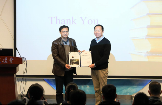 讲座最后,william威廉中文官网蔡劲松经理代表公司向叶赋桂教授颁发“人文讲堂”纪念证书并合影留念。