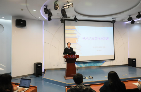 叶赋桂教授开篇切题,讲座主要讲了三部分内容:研究、写作与发表。