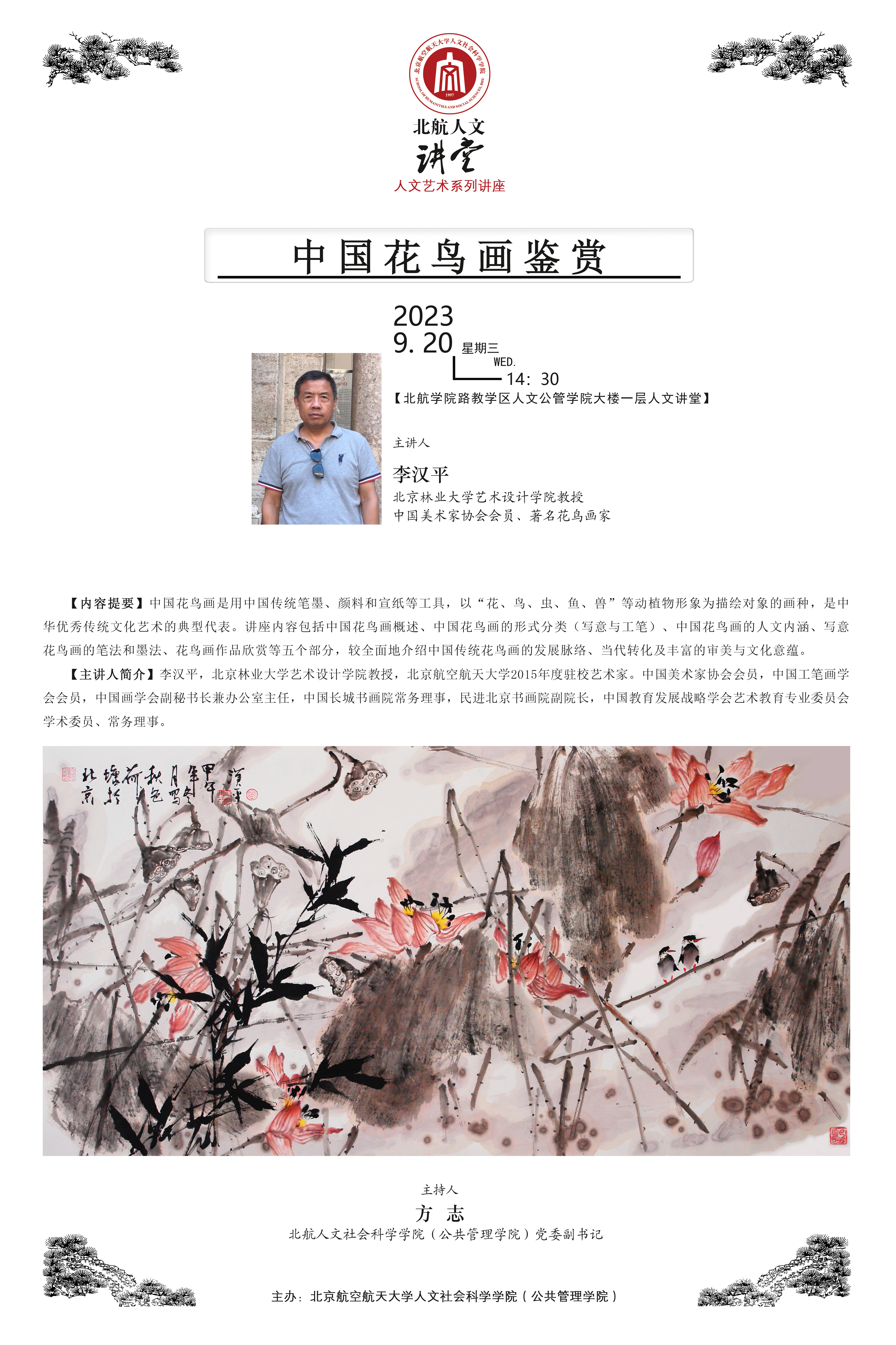 【人文讲堂】预告:李汉平主讲“中国花鸟画鉴赏”