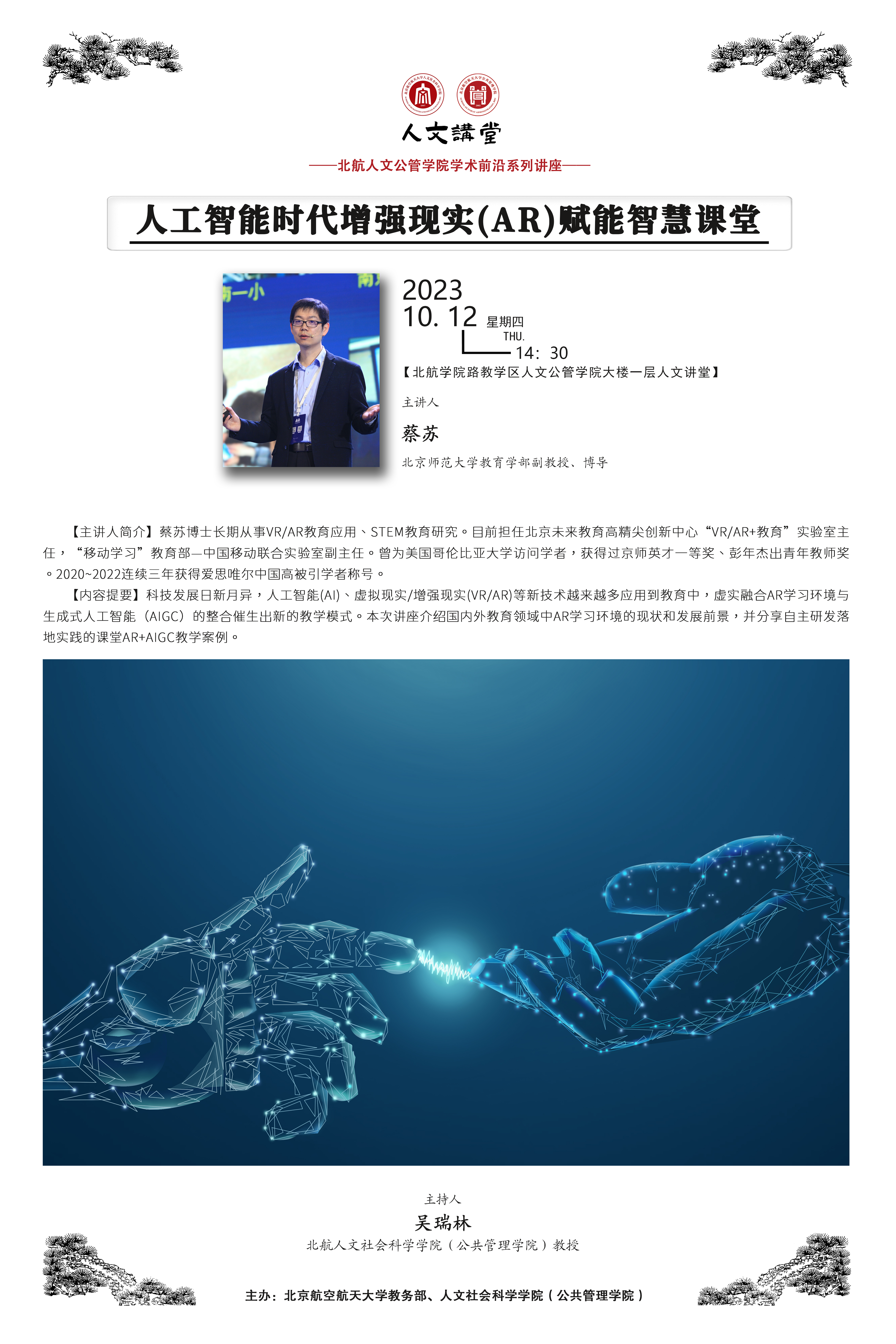 蔡苏博士长期从事VR/AR教育应用、STEM教育研究。目前担任北京未来教育高精尖创新中心“VR/AR+教育”实验室主任,“移动学习”教育部—中国移动联合实验室副主任。曾为美国哥伦比亚大学访问学者,获得过京师英才一等奖、彭年杰出青年教师奖。2020~2022连续三年获得爱思唯尔中国高被引学者称号。