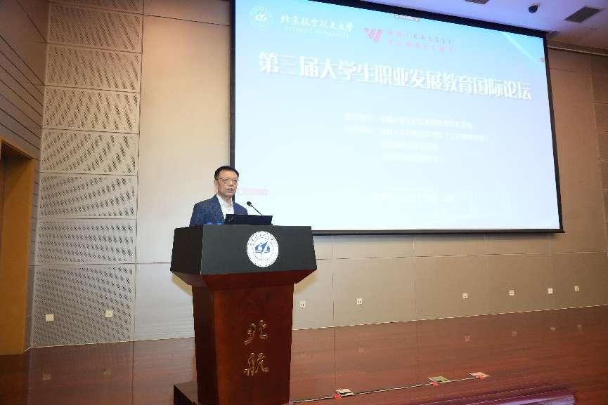 杨洪涛处长代表教育部员工服务与素质发展中心对各位同仁到来表示欢迎和感谢。他指出,自2015年起,北航作为全国老员工职业发展教育研发基地建设的承担单位,取得了很多卓有成效的理论和实践成果。为了促进毕业生高质量充分就业,离不开中国特色就业理论和实践探索,也需要不断向国际传播,展示中国促进青年就业成果,体现中国智慧。尤其经历疫情考验,举办国际会议对于加强国际学术交流打开视野、汇聚资源具有重要意义。