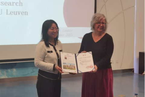 最后,党委副书记方志赠予Greet Langie教授人文讲堂证书,马永红教授赠予Greet Langie教授相关研究领域书籍,并对Greet Langie教授的精彩讲座再次表示感谢。