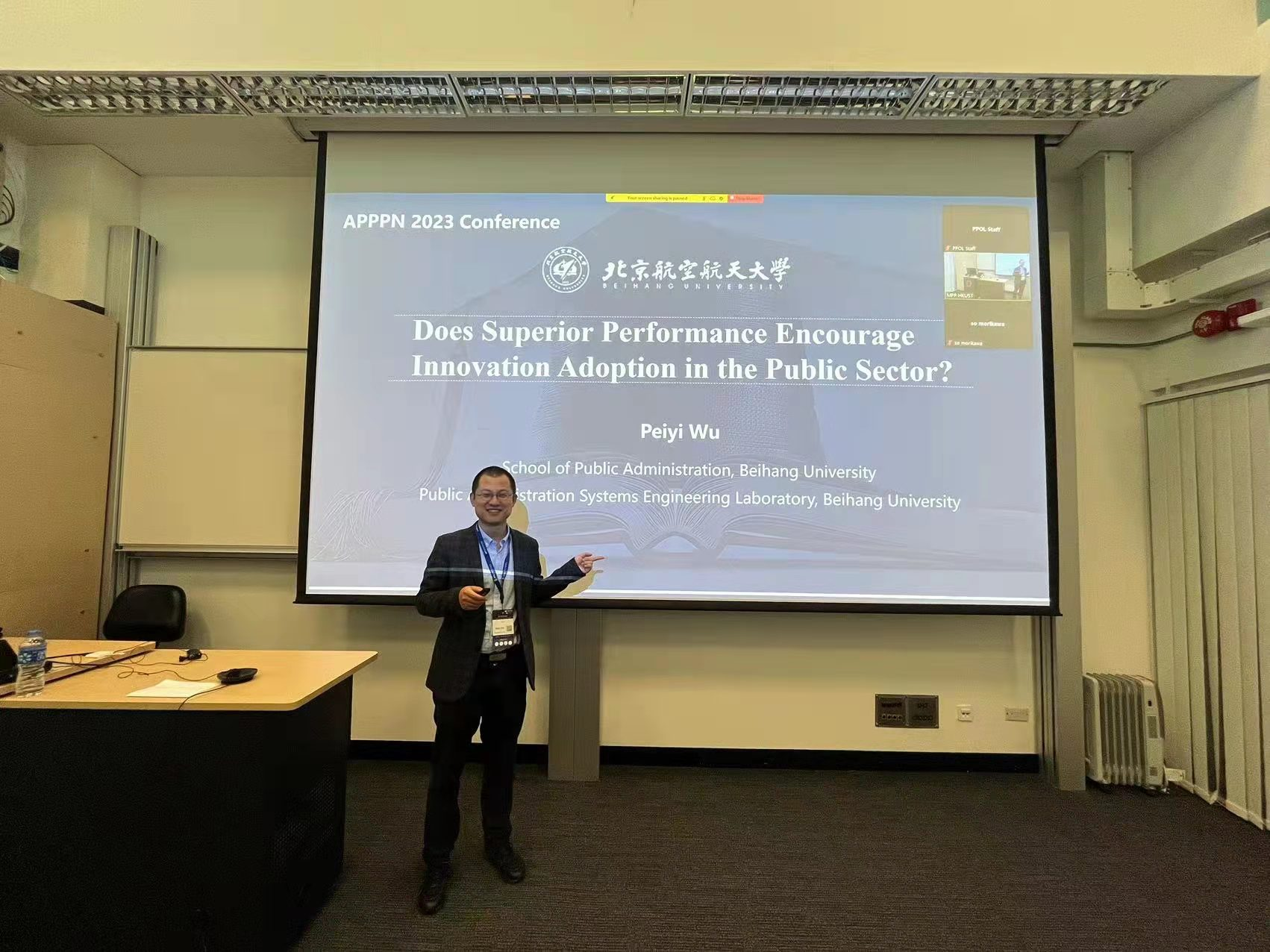 2023年5月31日至6月2日,william威廉中文官网公共政策与应急管理系助理教授吴培熠赴香港科技大学参加2023年亚太公共政策网络(the Asia-Pacific Public Policy Network,简称AP-PPN)年会,并作了题为“Does Superior Performance Encourage Innovation Adoption in the Public Sector ?”的学术报告。