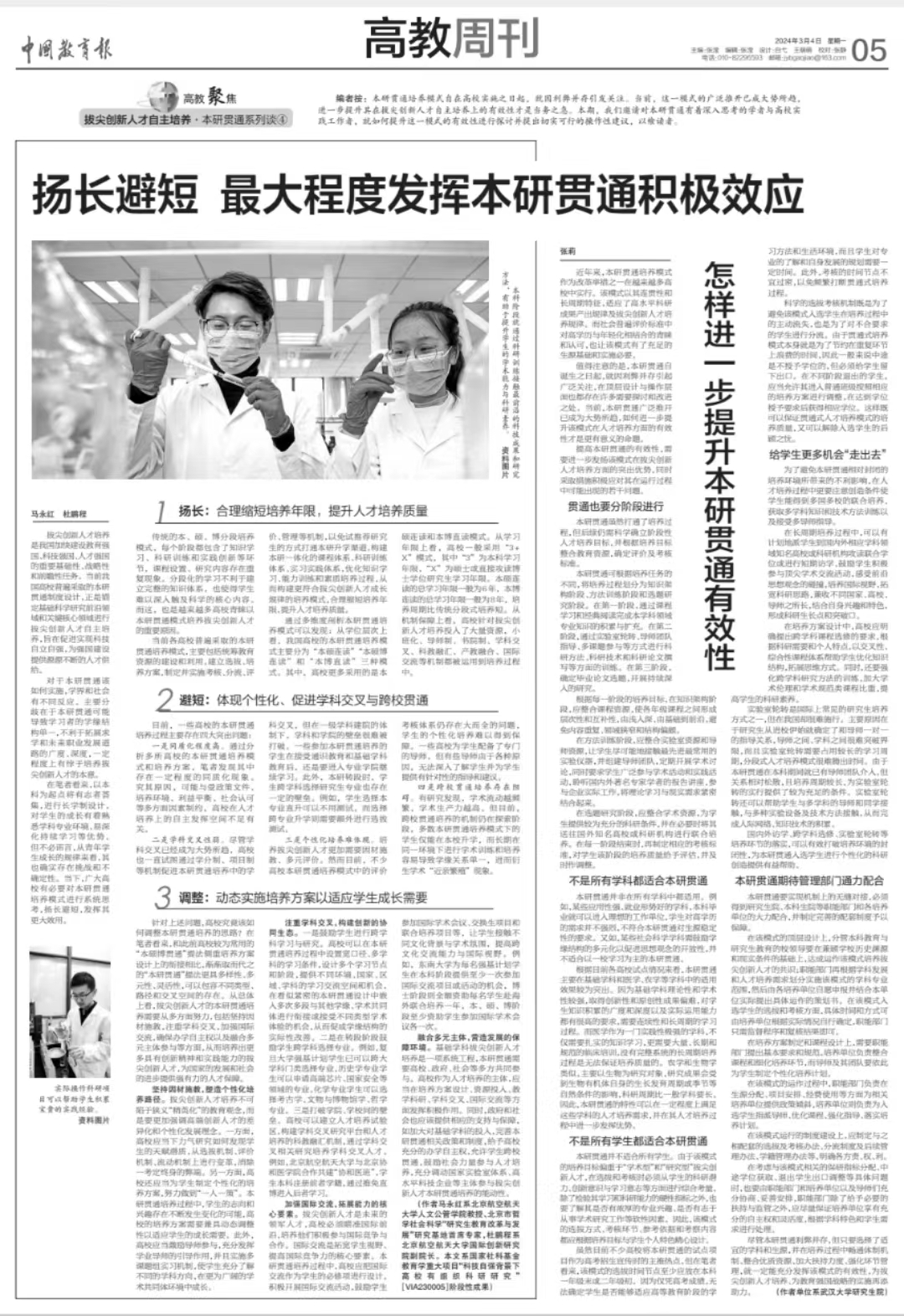 扬长避短 最大程度发挥本研贯通积极效应