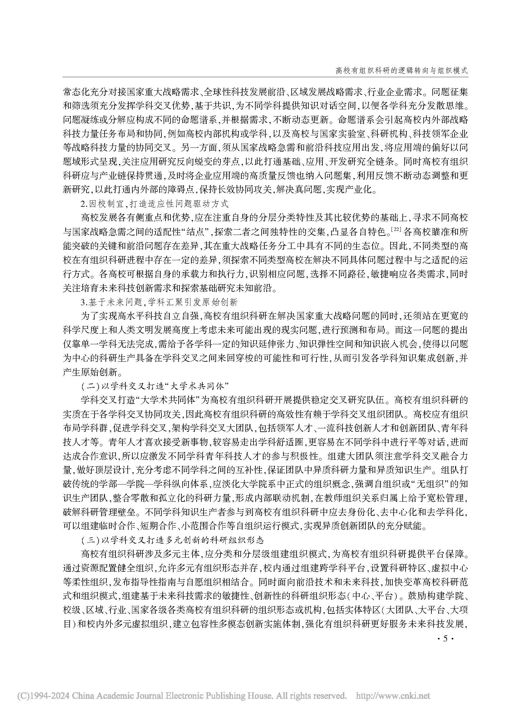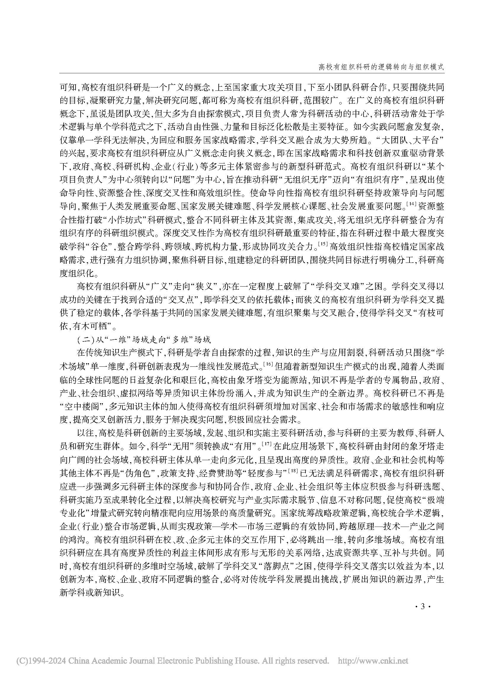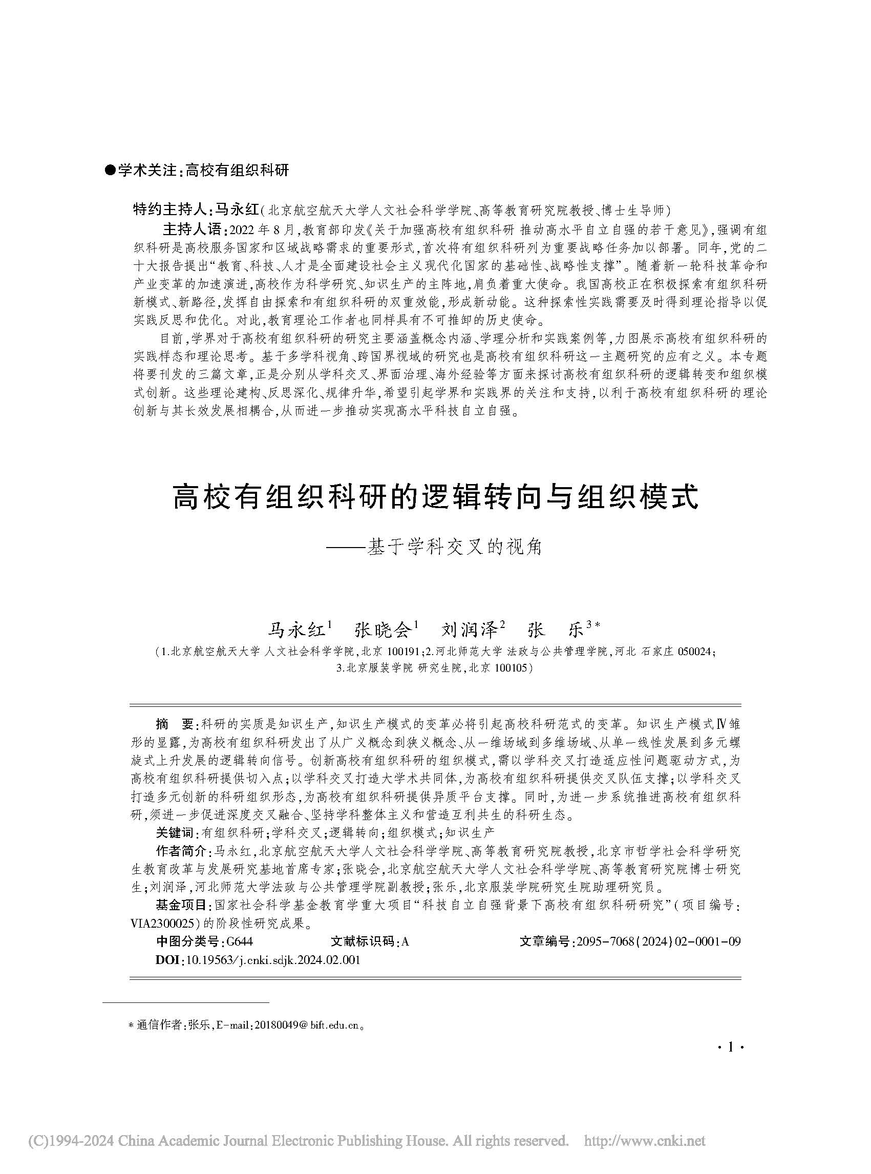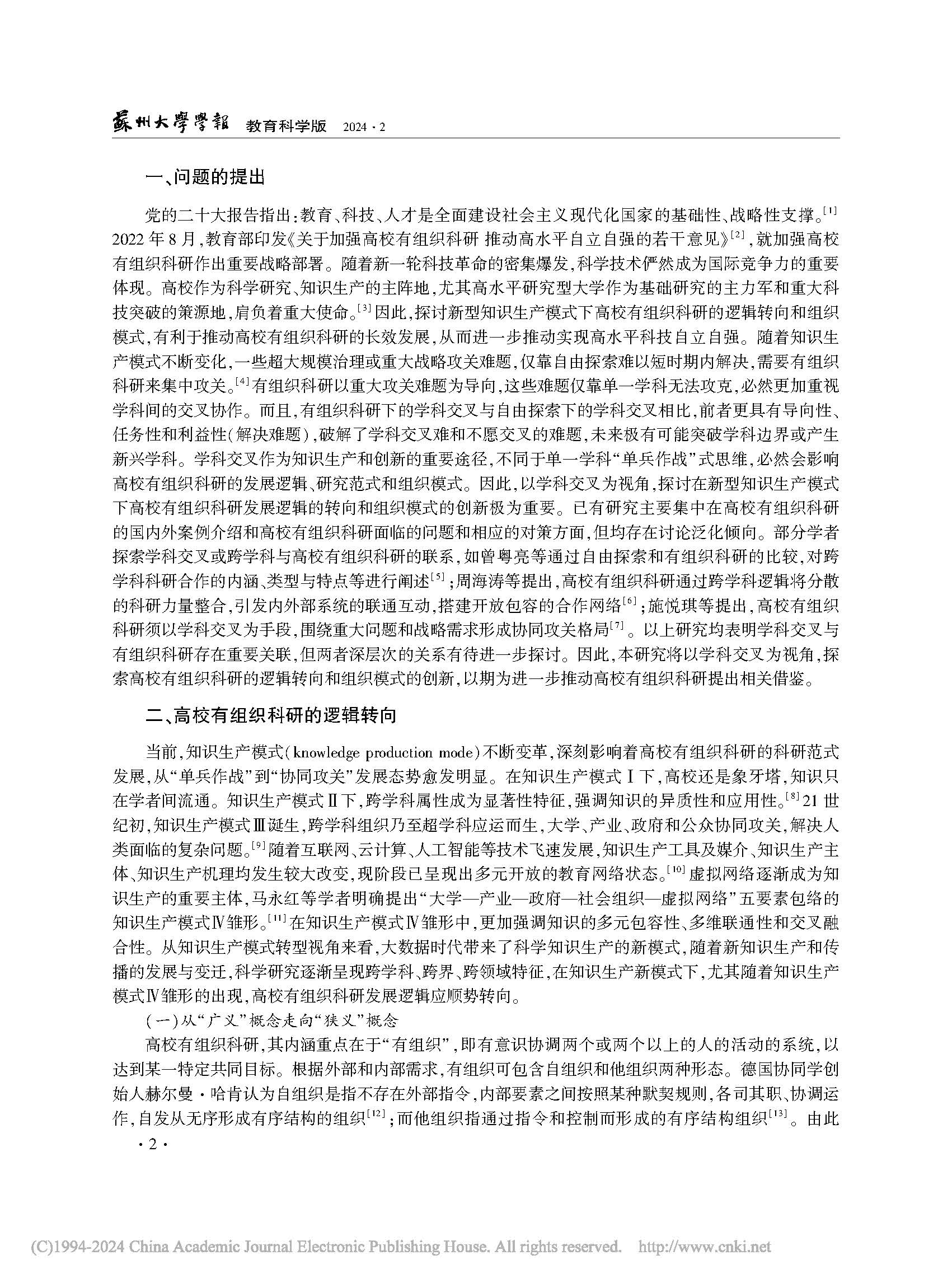 【关键词】有组织科研;学科交叉;逻辑转向;纽织模式;知识生产