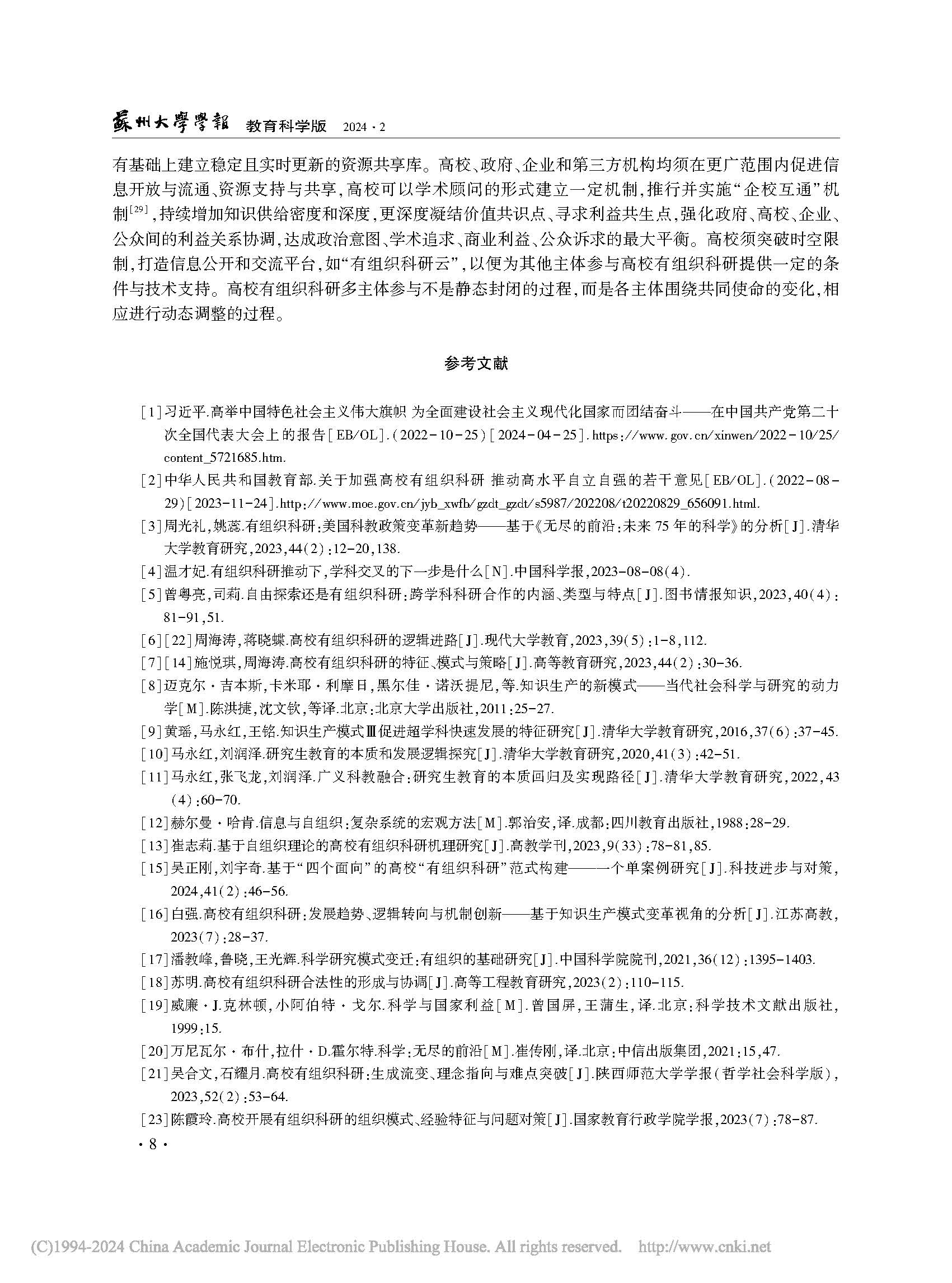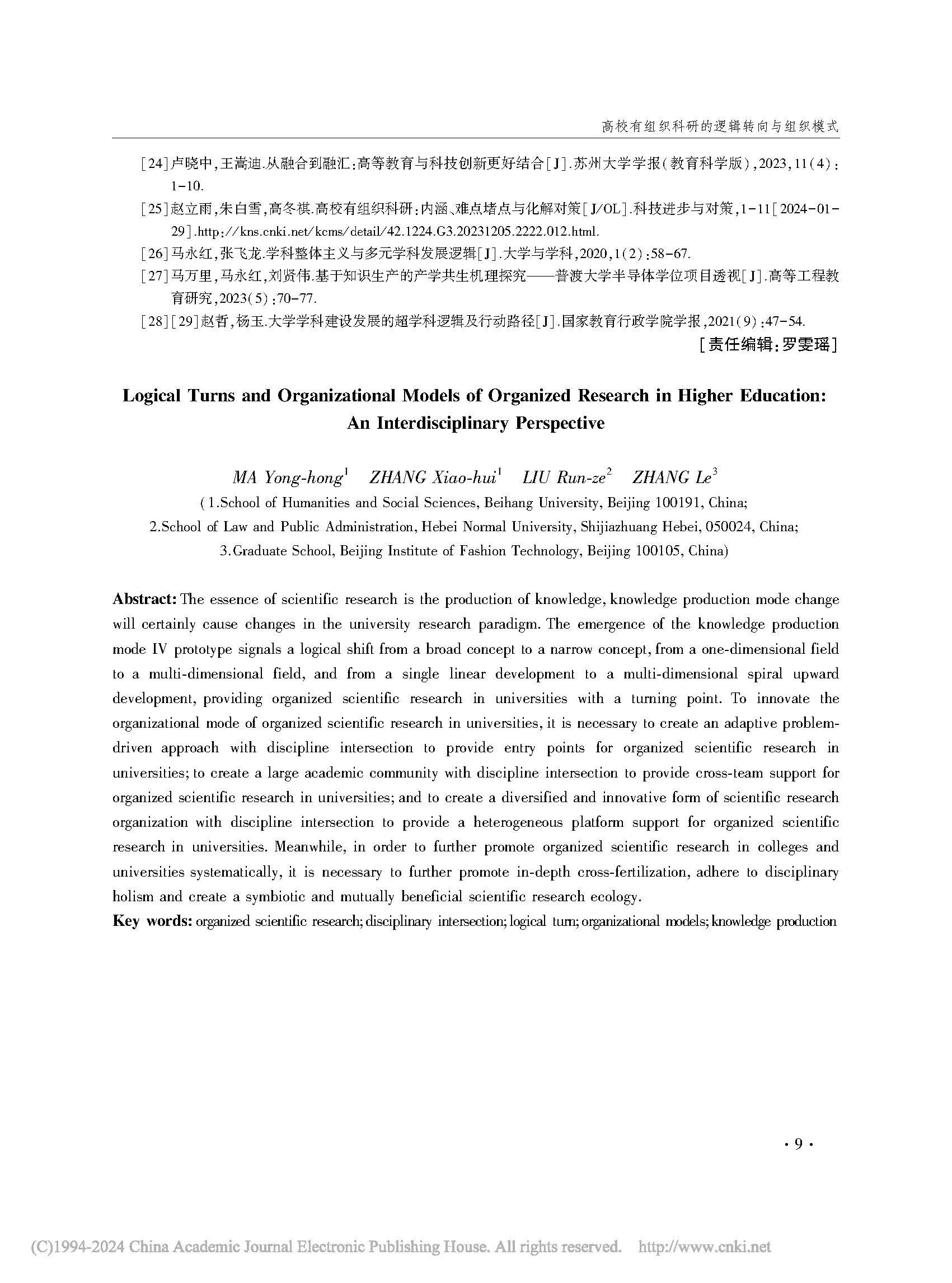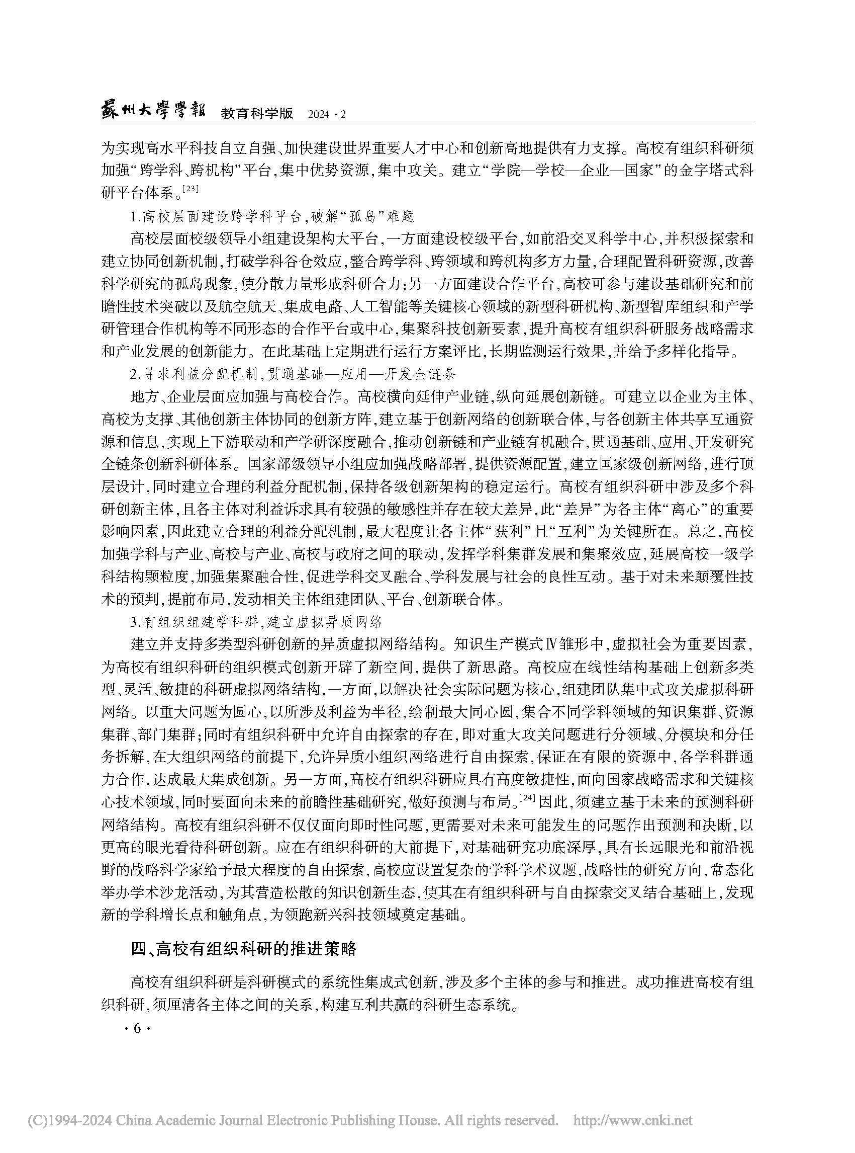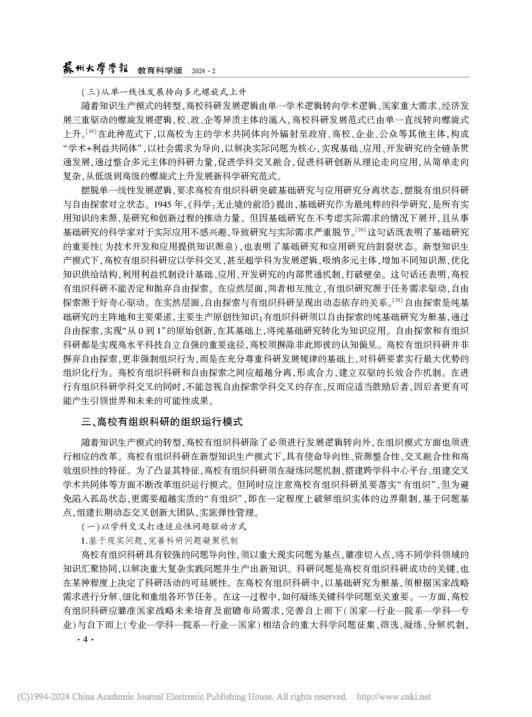 【关键词】有组织科研;学科交叉;逻辑转向;纽织模式;知识生产