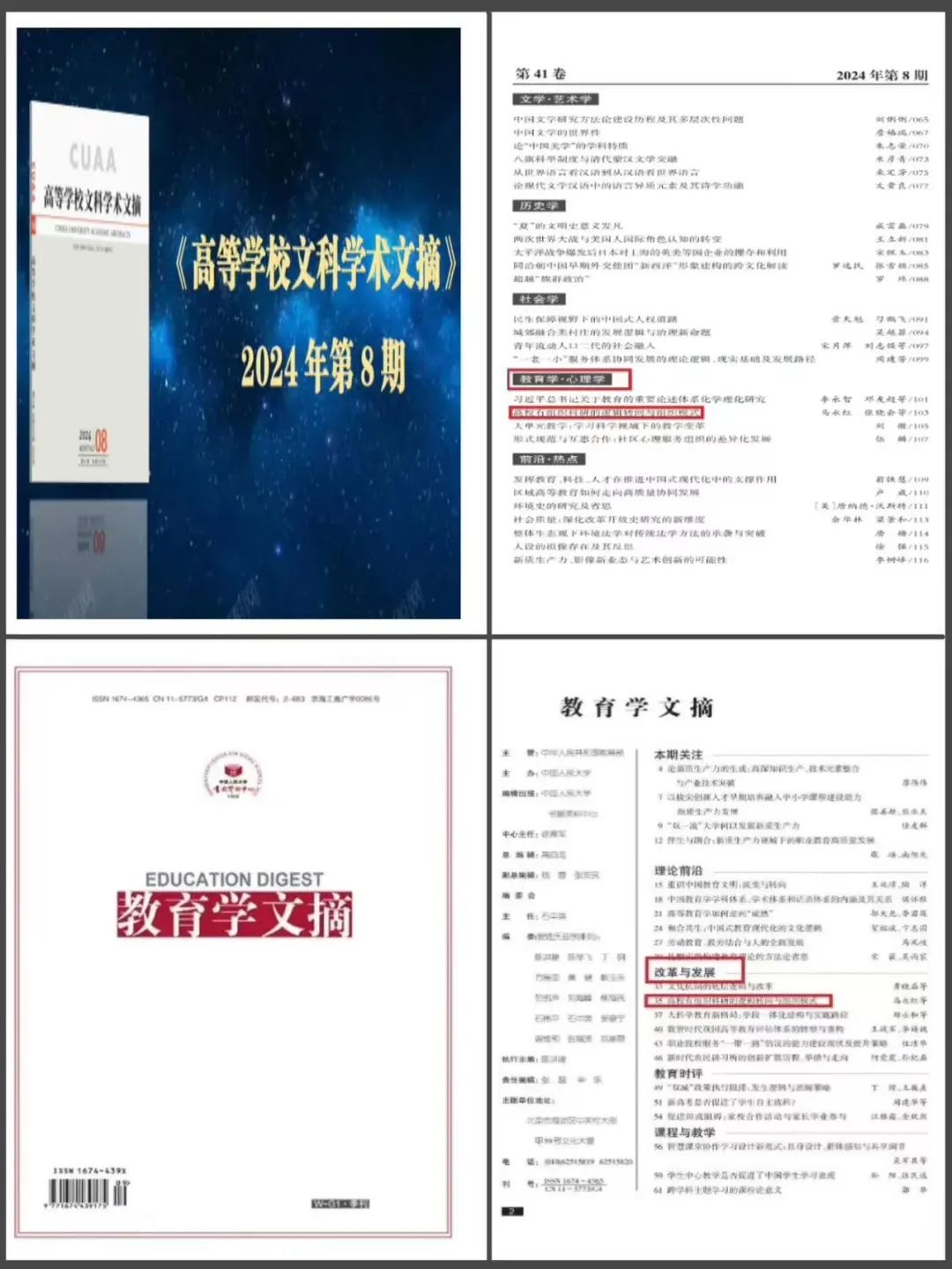 近日,william威廉中文官网马永红教授、博士研究生张晓会撰写的《高校有组织科研的逻辑转向与组织模式—基于学科交叉的视角》(原刊发于《苏州大学学报(教育科学版)》2024年第2期),被《高校文科学术文摘》2024年第8期全文转载,被《人大复印报刊资料·教育学文摘》转载。