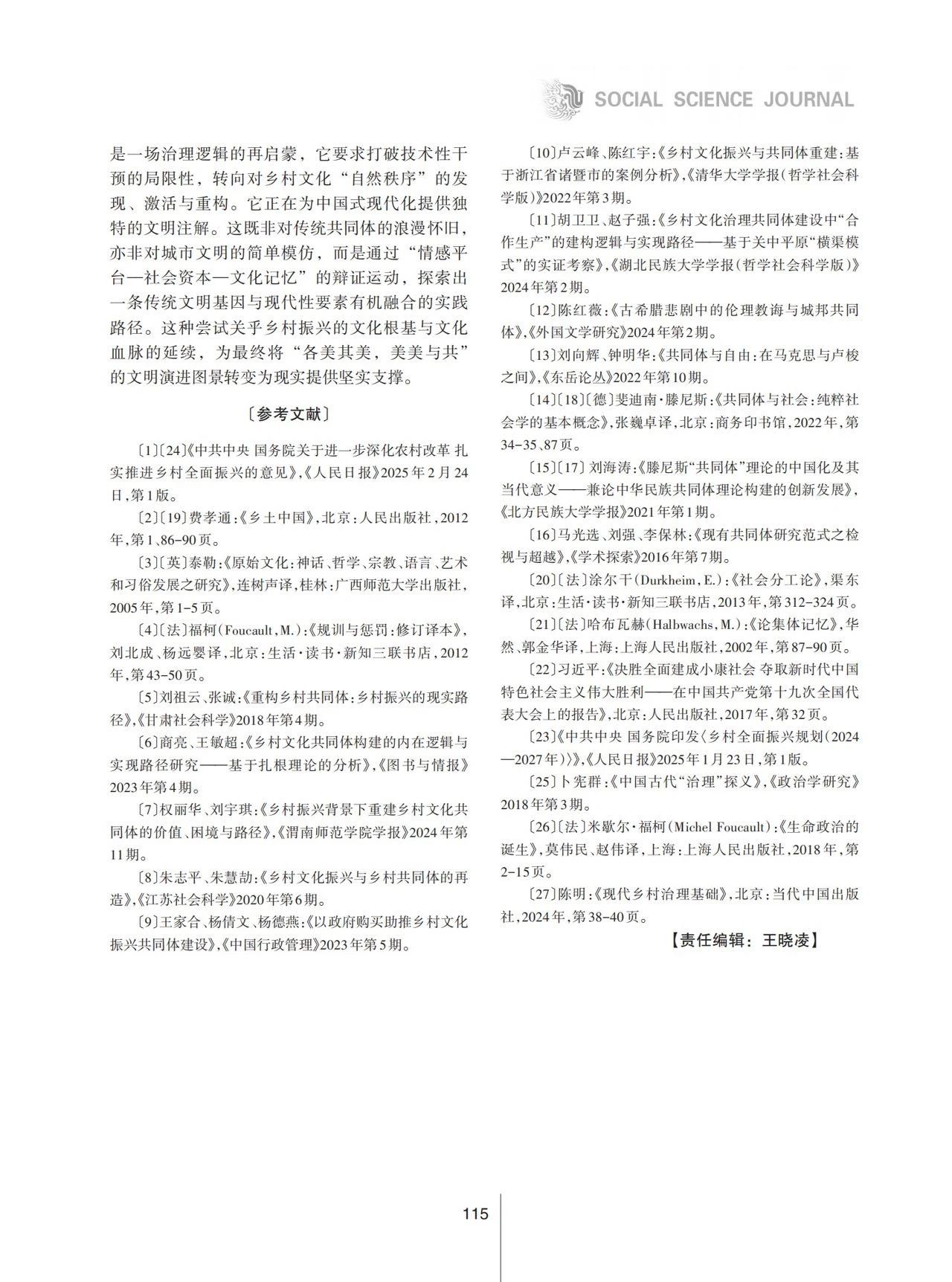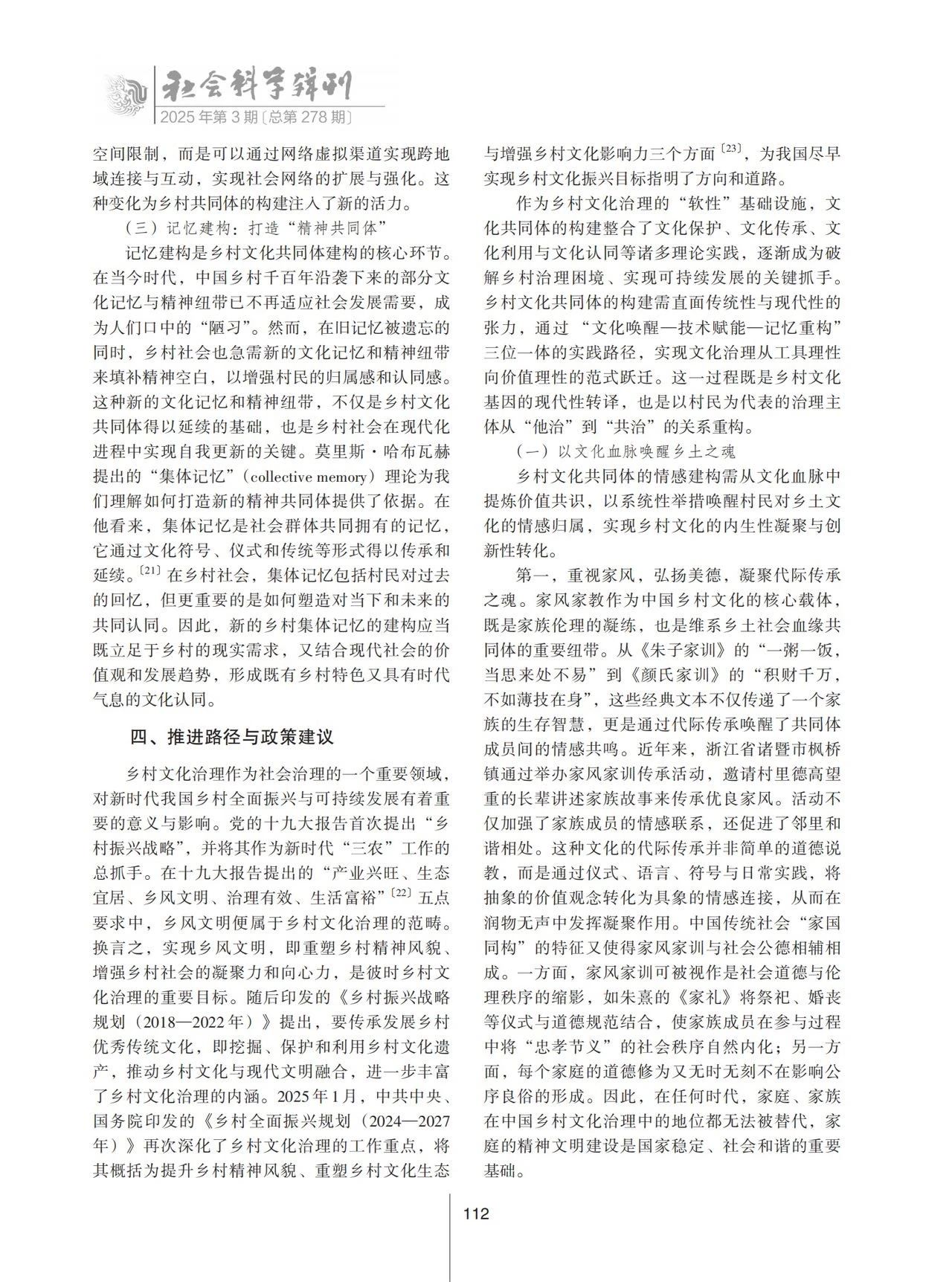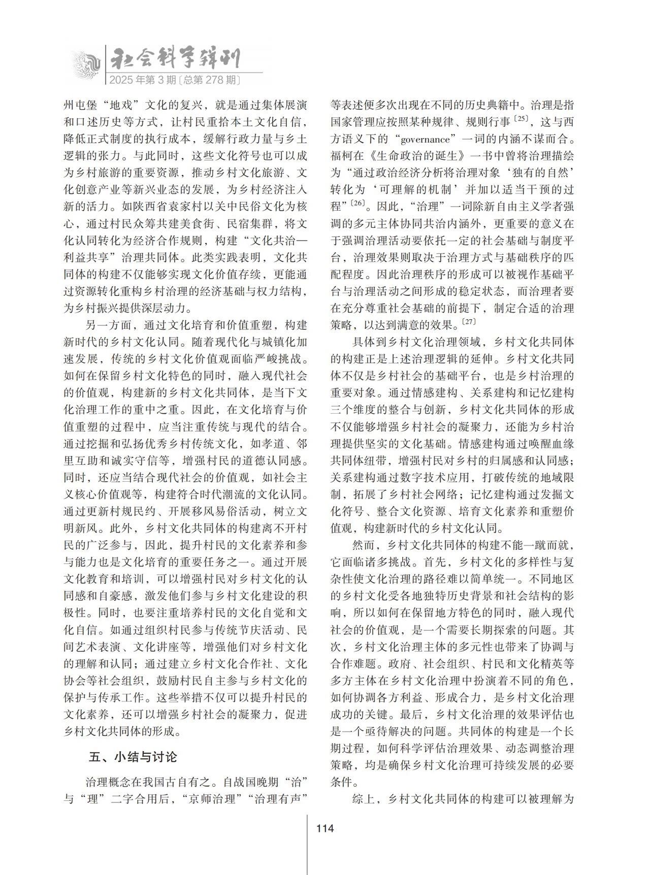 近日,william威廉中文官网陈文博教授、科研助理张璐洋在《社会科学辑刊》2025年第3期发表《以文促治:乡村文化共同体的建构逻辑与推进路径》一文。