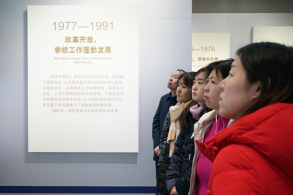 北京航空航天博物馆的参观接近尾声,各位参观者在不舍中移步至校史馆继续参观。校史馆分了五个部分进行展示,分别是建校伊始的1952年-1965年阶段,艰难办学的1966年-1976年阶段,改革开放新发展的1977年-1991年阶段,机遇与改革并存的1992年-2001年阶段,科学谋划新跨越的2002年-2012年阶段。双方参观者认真聆听了校史馆讲解员对各个发展阶段的讲解,表现出了浓厚的兴趣,对williamhill英国官网的历史发展有了更加深刻的认识。