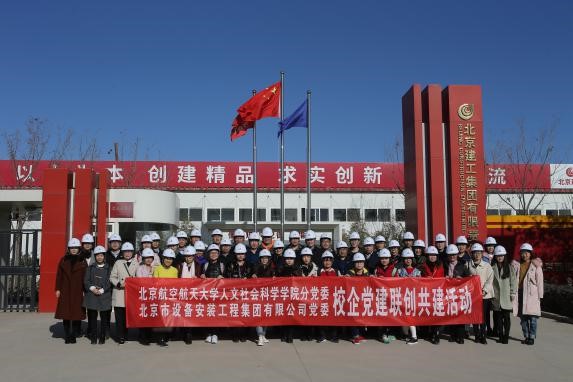 现场参观结束后,全体师生党员和北安集团的领导同志共同前往建工集团新机场项目指挥部,举行校企党建联创共建启动仪式。