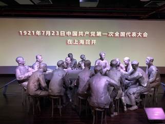 随后全体党员共同抵达中共一大会址,在这里大家依次参观了不同展馆,又一次回顾了我们伟大党的诞生历程。除了学习中国共产党成立的历史背景、早期活动及影响,又再次重温了中国共产党第一次全国代表大会召开的全过程。令人印象深刻的是一组蜡像,它再现了出席中共“一大”会议的15位与会者围桌而坐、热烈讨论的生动场景,逼真而写实,仿佛让我们回到了那个激情澎湃的时代。
