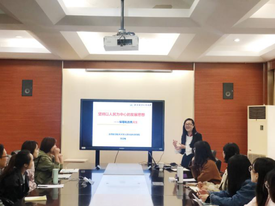 李亚梅书记以“坚持以人民为中心的发展思想——保障和改善民生”为主题进行专题党课,李亚梅书记结合自身的学科知识,从“民生”的视角对党中央提出的“坚持以人民为中心的发展思想”进行了深入解读,让我们更深刻地理解了党的“初心”和“使命”。主题党课围绕“实现更高质量更充分就业”“提高人民收入水平”“加强社会保障建设”“坚决打赢脱贫攻坚战”四个方面展开,并阐述了党和政府在解决这些问题上的决心和付出的巨大努力。随后,李亚梅书记从法律的专业视角,结合社会热点问题,解读了十九大报告及2019年政府工作报告中民生部分的内容;并对过去与现在进行纵向比较,国内和国际视野进行横向比较,引入“高校毕业生就业”“农民工就业”“讨薪问题”“贫困县摘帽”等社会实例;鼓励同学们关注社会现实问题,积极投身社会实践,力争为社会的发展贡献出自己的力量。本次党课使同学们收益良多,党课在热烈的掌声中结束。