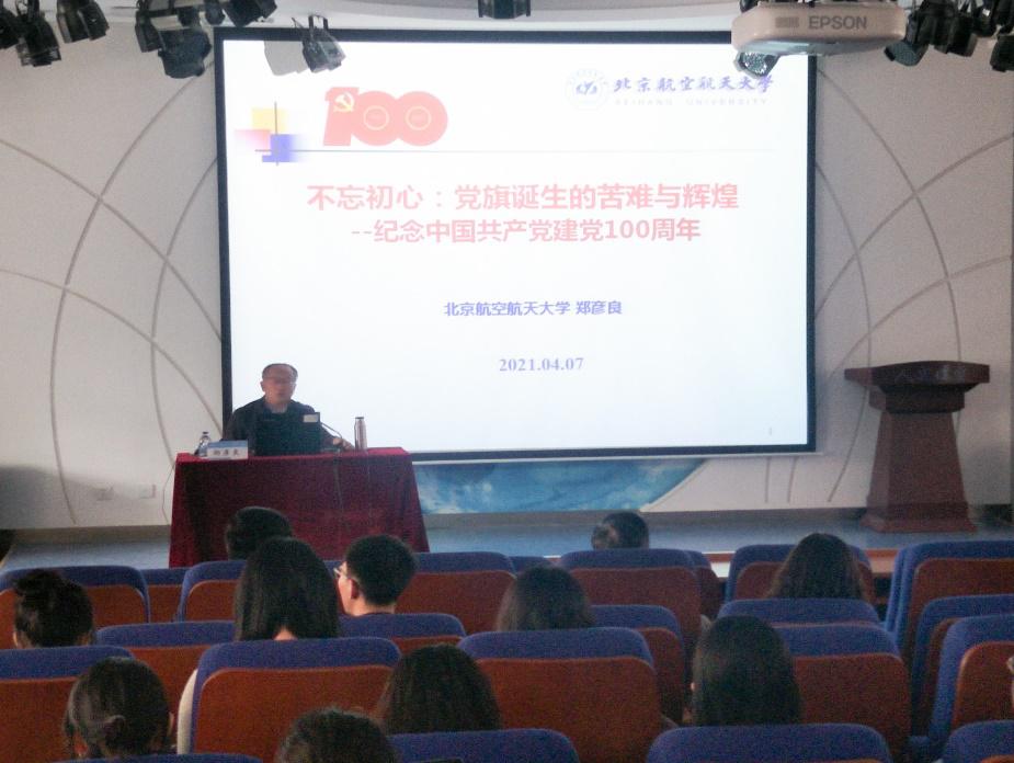 党旗是中国共产党的象征和标志,从一个侧面记录了中国共产党人披荆斩棘、求索奋进的苦难辉煌。“为共产主义事业奋斗终身,是中共始终如一的不变初心,希望大家能牢记中国共产党人为追求信仰前赴后继、披荆斩棘付出的巨大牺牲”,郑彦良教授在报告会最后讲道,“作为北航人,要用北航精神激励自己的学习和工作,在平凡中超越自我,做出不平凡的事!”