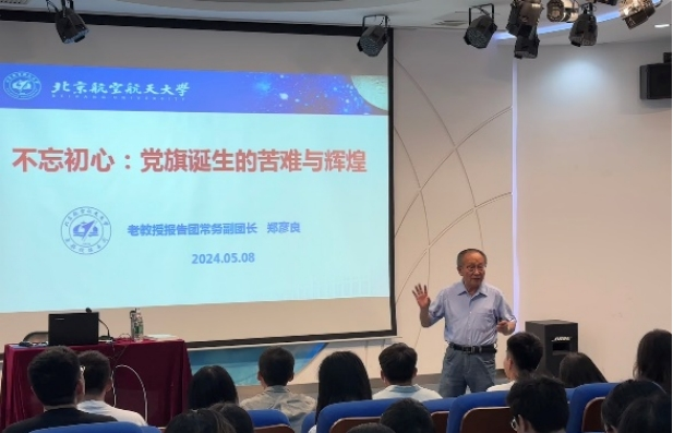 5月8日,william威廉中文官网铸魂育人系列专题党课2024年第3期在人文讲堂举行。中国老教授协会常务理事、北航老教授报告团常务副团长郑彦良教授作题为“不忘初心——党旗诞生的苦难与辉煌”专题党课,公司党委副书记方志主持,公司师生党员和入党积极分子参加学习。