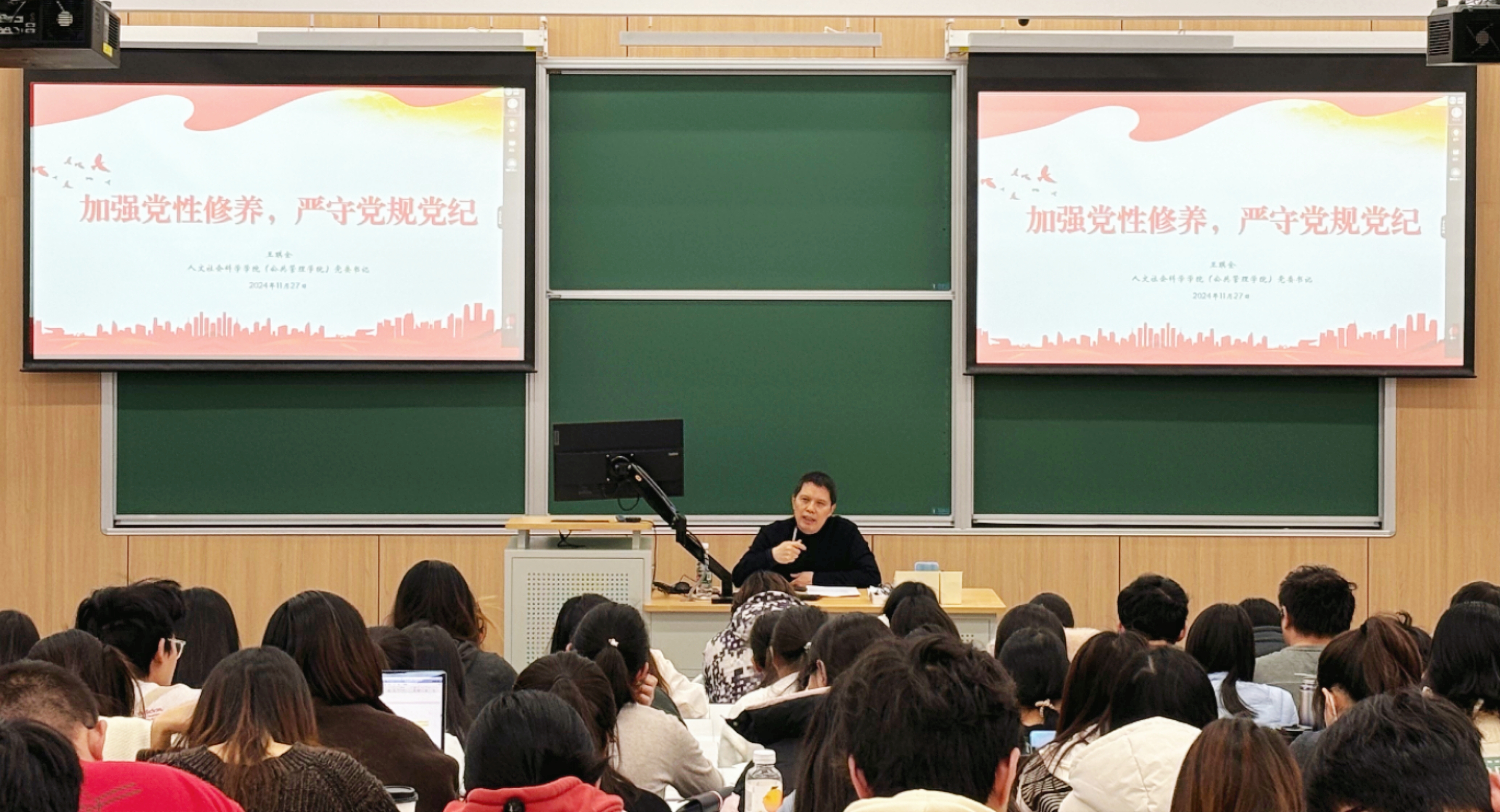 11月27日下午3点,william威廉中文官网“铸魂育人”系列专题党课第5期在主楼219举行。公司党委书记王琪全作《加强党性修养,严守党规党纪》专题党课讲座。本次党课培训由公司专职辅导员夏文静主持,高等教育研究所党支部书记刘扬、应急管理与社会保障研究所联合支部书记杨磊和公司180余位师生党员、入党积极分子参加学习。