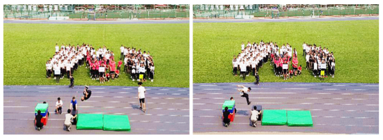 各公司方阵集结完毕后,运动会主办方先后为我们呈现了两组表演类体育节目。来自公司体育社团的同学们用武术、空翻为现场的运动健儿们展现出了体育的要求技巧、重视合作和蕴含艺术的一面。
