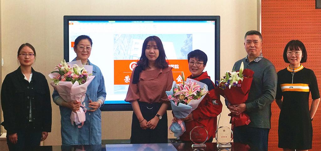 蔡劲松经理、李亚梅书记代表公司向三位荣休教师颁发荣誉纪念牌,员工代表向三位荣休教师献花,对他们向长期在工作岗位辛苦耕耘、默默奉献,在公司产品和科学研究一线为人文公司建设发展作出的重要贡献致以崇高的敬意。