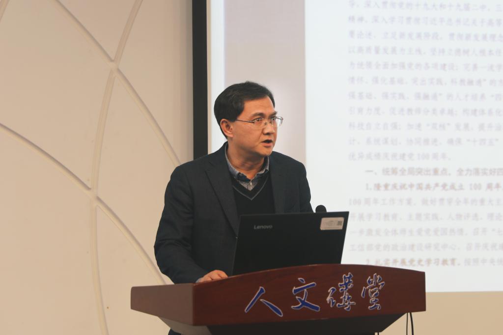 蔡劲松经理首先向全院教职工传达了公司2021年度工作会议精神。2021年度公司的工作要点共分为7大方面31项重点工作,包括“统筹全局,突出重点,全力落实好四项重大任务”“推进五大学科群建设,完善一流学科体系”“打造人才培养‘四强’模式,提高人才培养质量”“深化五大系列发展与改革,建设高素质教师队伍”“构建体系化创新能力,支撑国家科技自立自强”“建设‘四个北航’,持续提升治理能力”“以党的政治建设为统领,推动全面从严治党向纵深发展”等。面对新形势新任务,公司将以高质量发展为主线,坚持立德树人根本任务,以党的政治建设为统领全面加强党的各项建设,确保“十四五”开好局、起好步,以优异成绩庆祝建党100周年。
