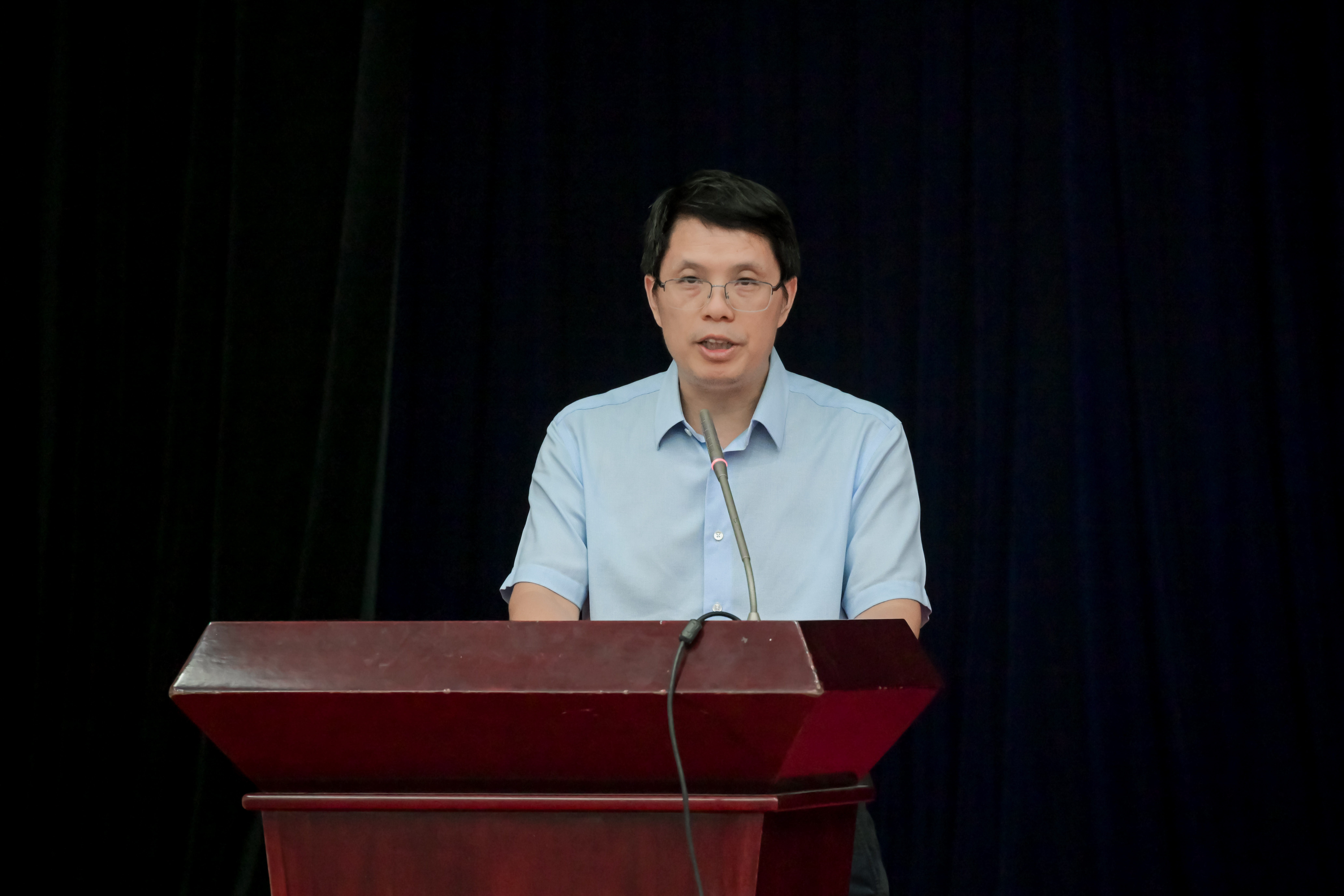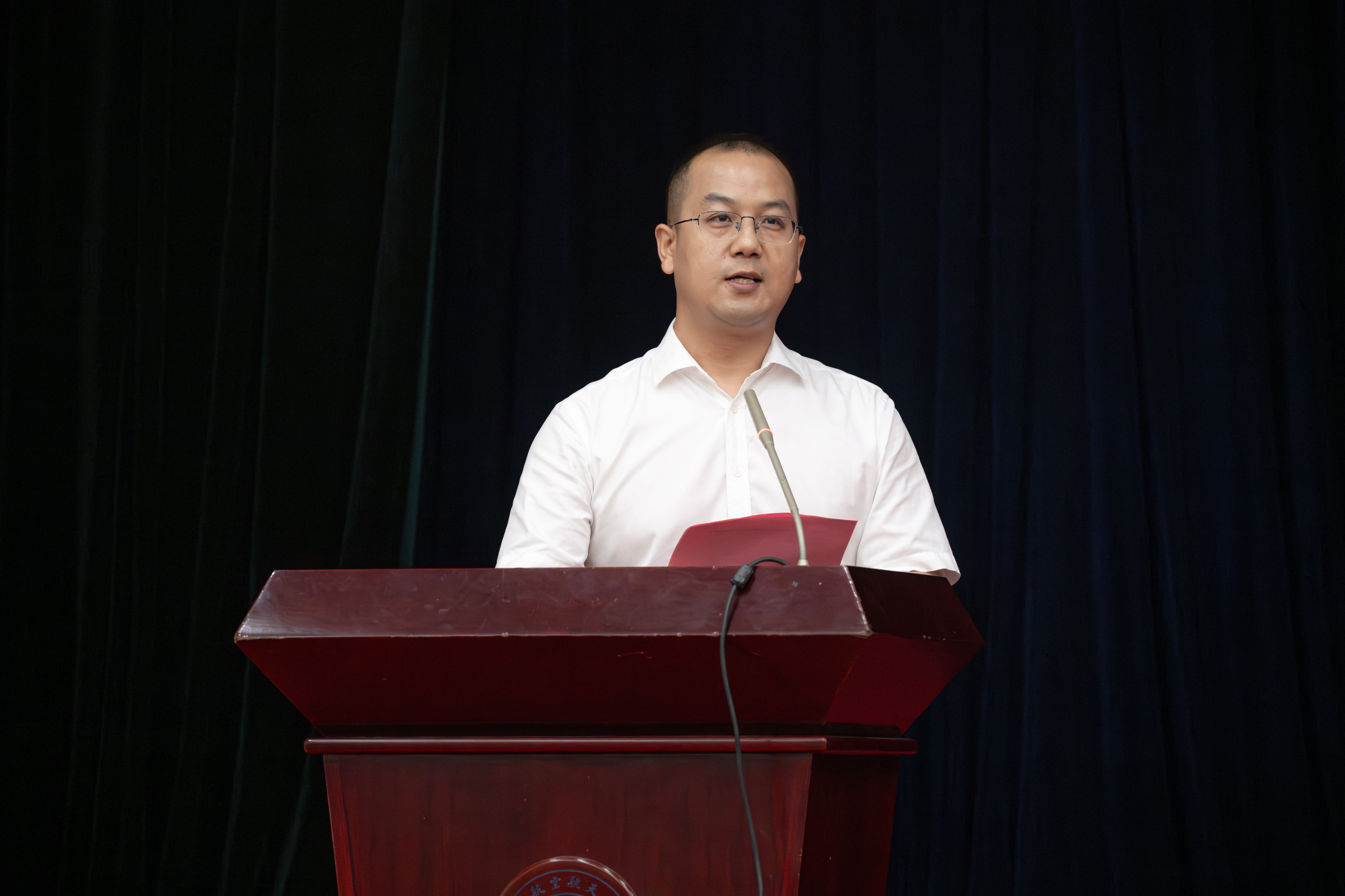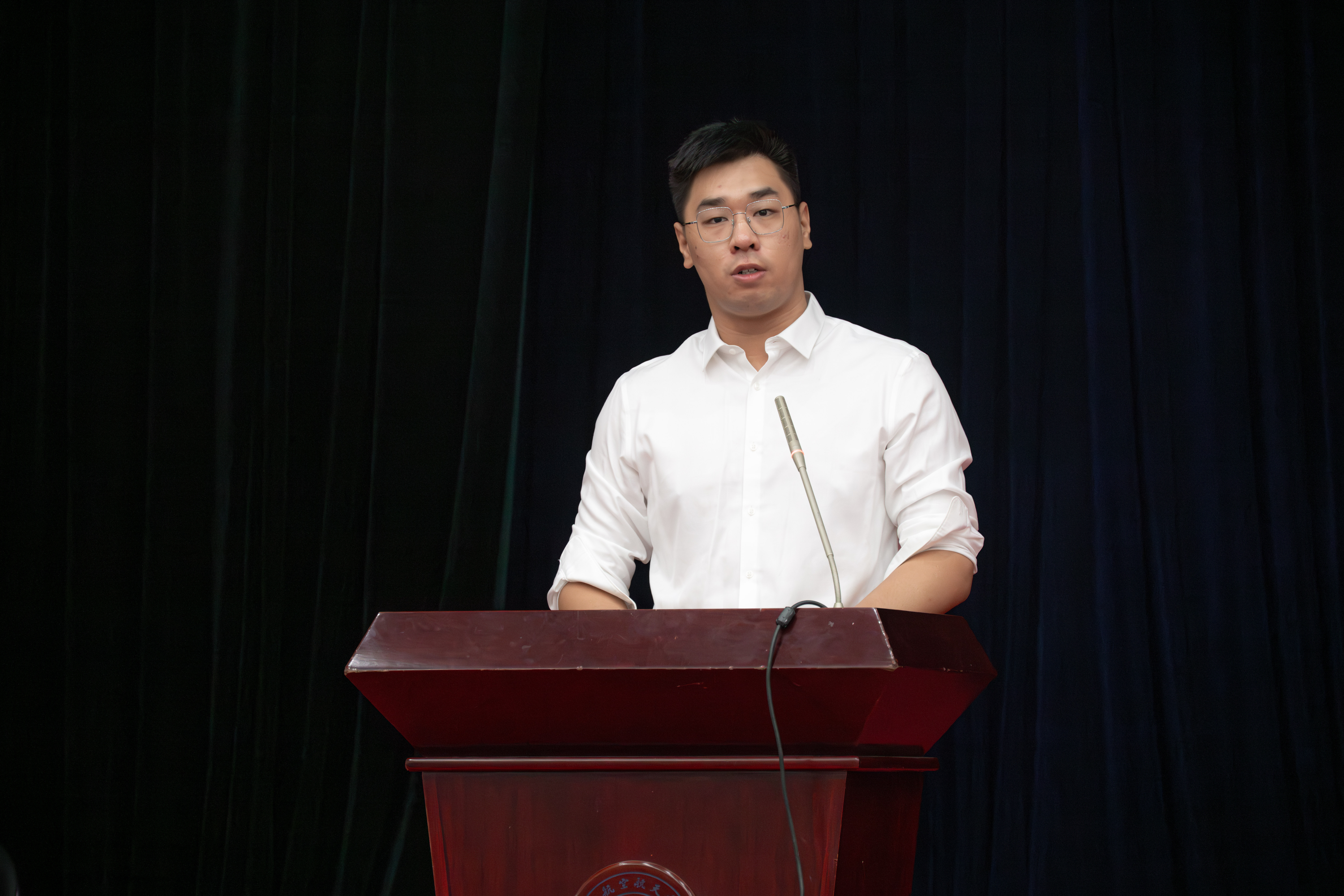 教师代表贾洪波教授首先向新入学的研究生们表示热烈的欢迎。贾洪波教授鼓励新生们努力修炼,成为精神贵族。成为精神贵族的过程,也就是同学们在未来的研究生生涯中立德、立功、立言的过程,是博观约取、厚积薄发的过程,是抽丝剥茧、化蛹成蝶的过程。正如毛主席所说“青年人朝气蓬勃,好像早晨八、九点钟的太阳”,要做时间的驾驭者,一万年太久,只争朝夕。